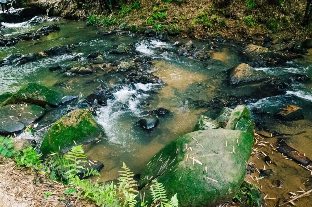 步道很长,如果你是想去溪水亲水,那需要一点耐心,走到喘气甚至要抱怨“怎么还没到”时,一条石滩清溪就展现在眼前。