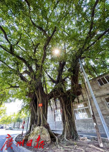 “现在,为确保古树健康,巡查、养护、专家会诊等措施会多举并行。”黄阁镇建设办麦浩钧告诉记者,目前黄阁镇有107棵古树,连理树是其中一棵。所有古树都会定期进行村、镇、区、市四级巡查,市民也会自发巡查,发现问题立即反馈。每棵古树都会定期进行健康检测,建立台账,巡查时会对照上次记录进行比对,同时每年两次对古树进行定期养护。一旦发现古树出现生长异常或病虫害,有关部门也会及时邀请专家进行会诊。“目前连理树生长状况良好,每年都会萌发很多新叶子,越长越茂盛。”