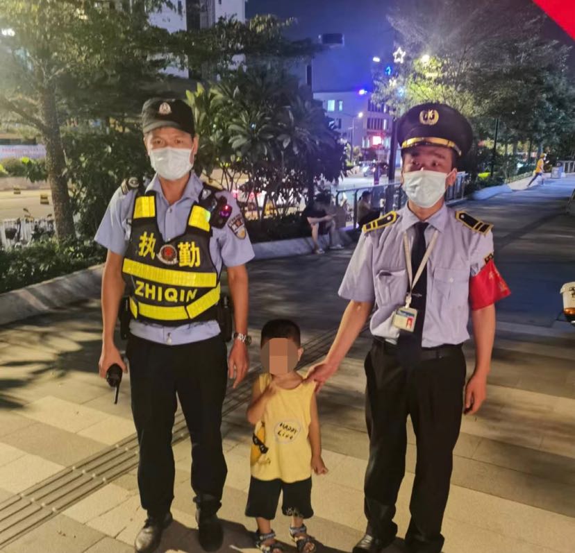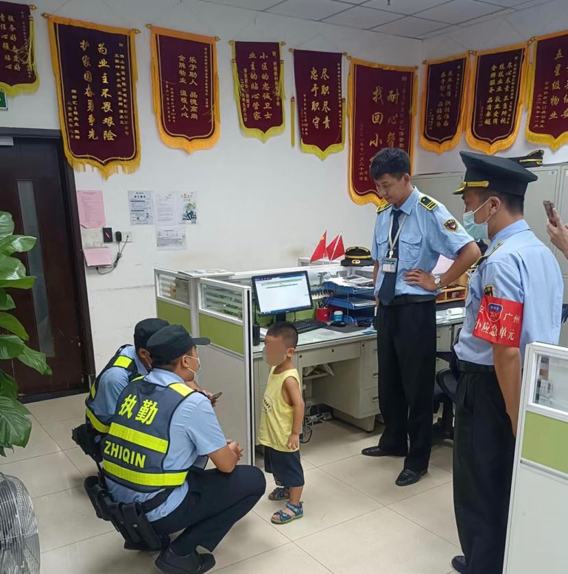 9月29日晚10点左右,该社区缤纷汇8座一住户致电物业消防监控中心,反映有个小朋友在某超市旁与家人走失。