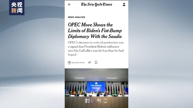 此前,美国政府一直在施压主要产油国政府,劝阻他们不要减产。但此举并未奏效。在主要产油国宣布减产决定后,有美国媒体指出,这是美国外交的失败。