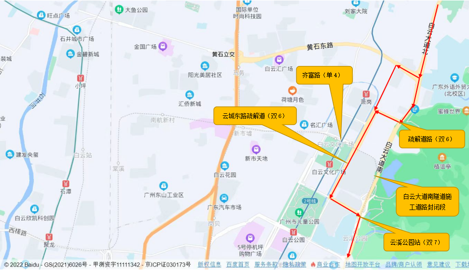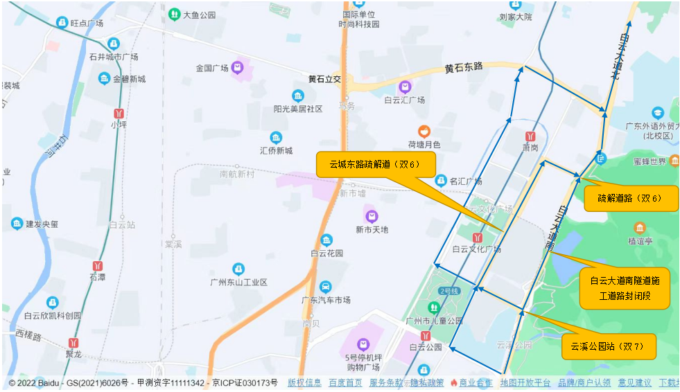 二、白云大道北往南方向车辆:白云大道北→白云大道疏解道→云城东路→云城中一路→白云大道南。