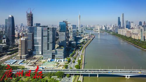 蓝天下的广州琶洲人工智能与数字经济试验区。