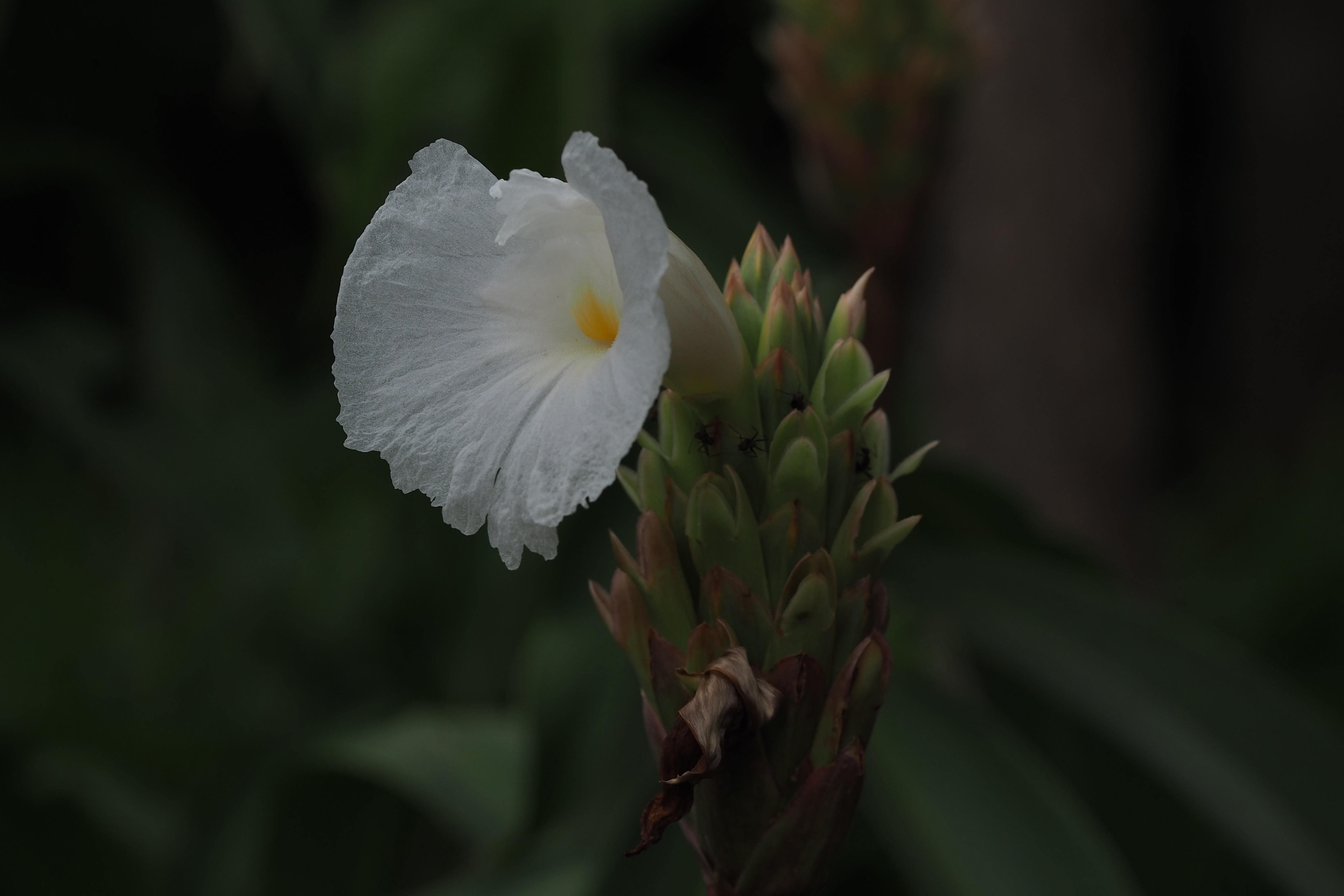 生长郁郁葱葱,花后亭亭玉立。“闭鞘姜”之所以为人们所熟悉,因为常被用作鲜切花、干花和庭院绿化之用途。之所以又被称作“白头到老”,因为它每次开花时,会从下向上只开放两朵白花,直开到顶端花谢为止。