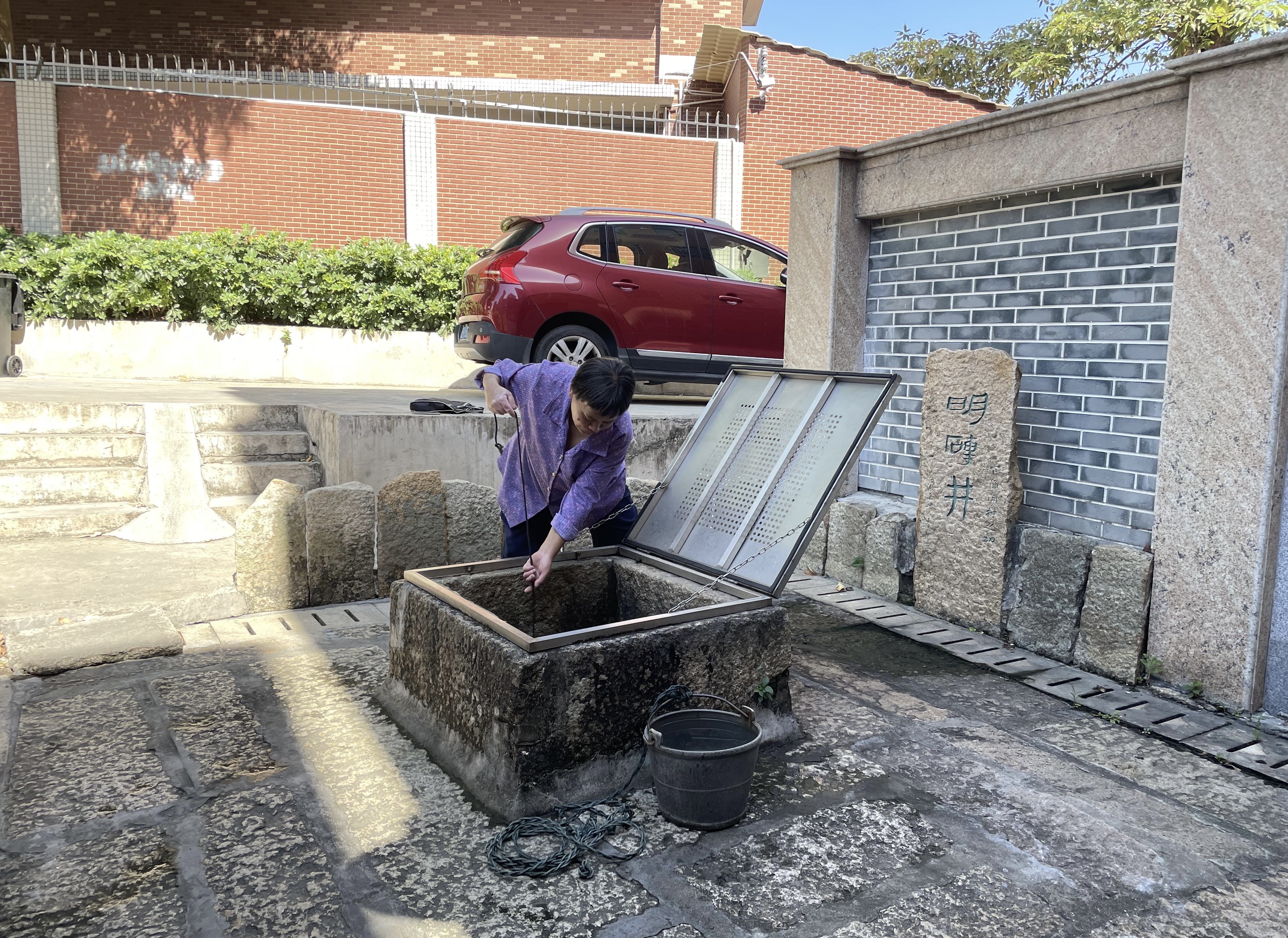 在一旁听着八叔讲解明砖井历史的娟姐,似乎也回忆起了一些往事。她对记者说,以前来这里取水的时候还需要排队。“我今年已经83岁了,年轻时候嫁到了官涌村,以前做饭、洗菜都会过来这里取水,人多的时候,井里还会出现短暂性停水的情况,等一个小时左右,井水又会重新涌上来了。”