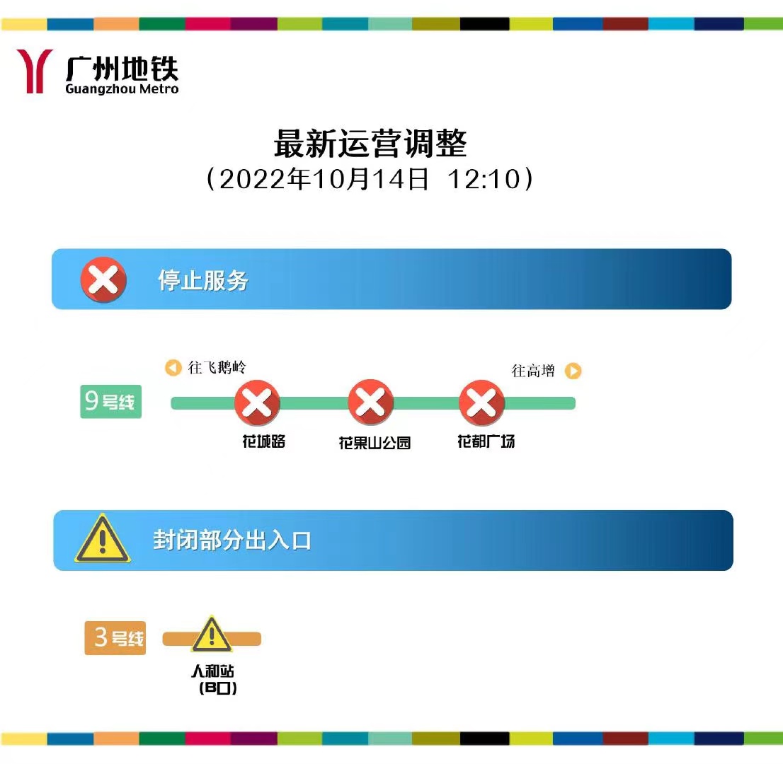 截至目前,九号线花城路站、花果山公园站、花都广场站3个车站停止对外服务。