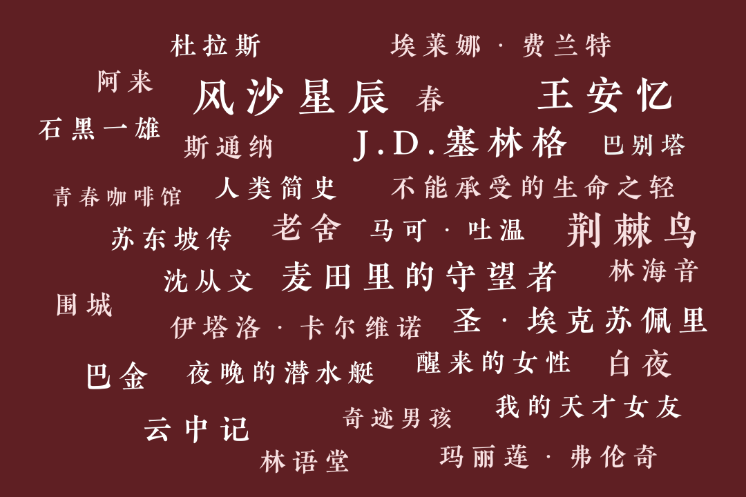 本书囊括了多部中外优秀作品,内容跨越文学、哲学、心理学、自然科学等多个门类,作者包括J.D.塞林格、埃莱娜·费兰特、马克·吐温、老舍、林语堂、王安忆等多位文学大家。
