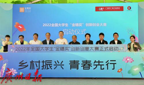 10月14日上午,2022年全国大学生“金穗奖”创新创业大赛在广州从化国医小镇正式启动。现场200余位高校代表、乡镇代表、企业家代表及专业院校大学生们出席,以创新创业竞赛激励大学生积极投身乡村振兴、奋力谱写青春画卷。