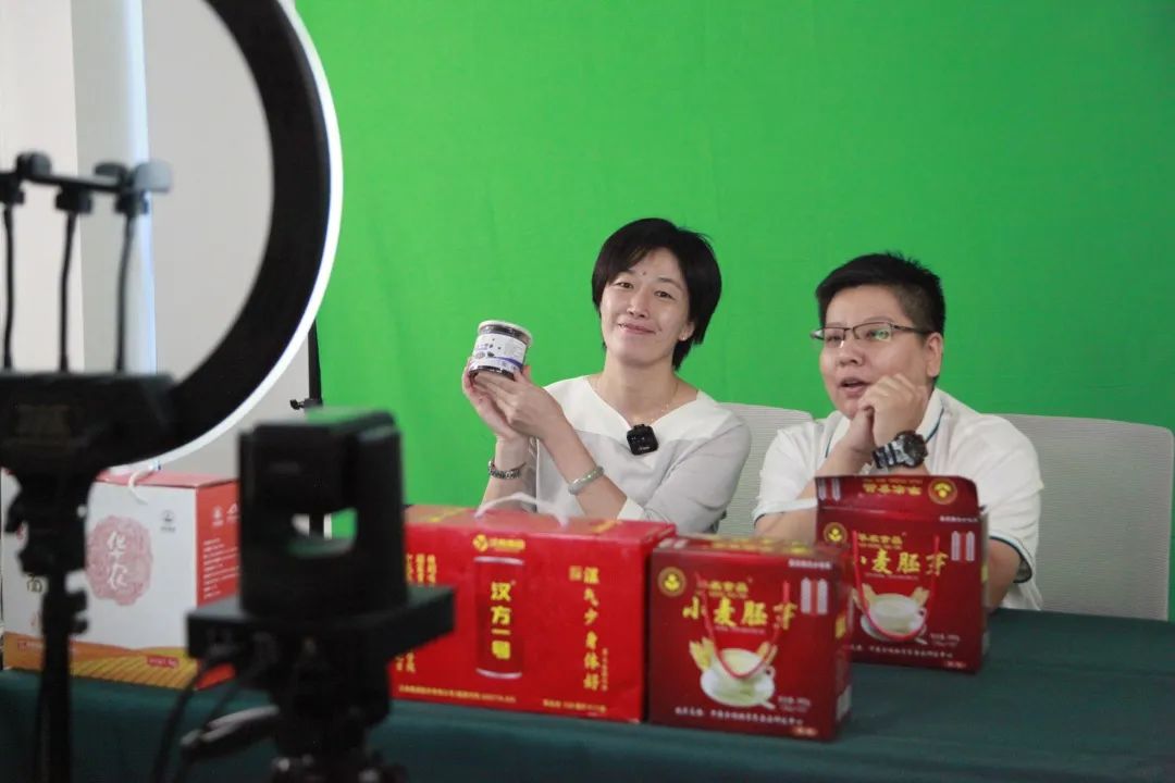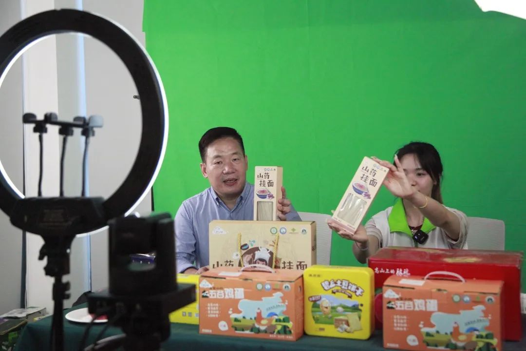 王英来委员(左)直播推介农产品