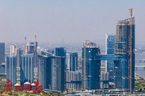 广州南沙灵山岛尖高楼大厦拔地而起。