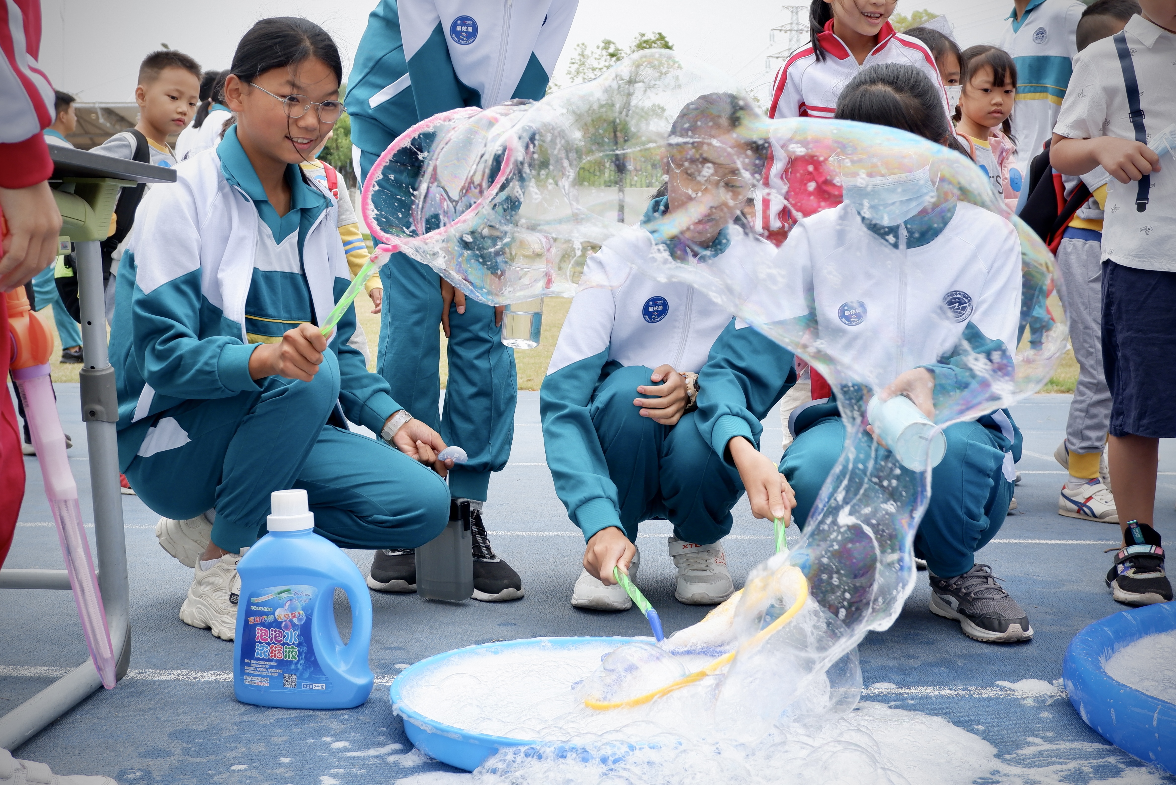 同学们在体验制造泡泡项目。