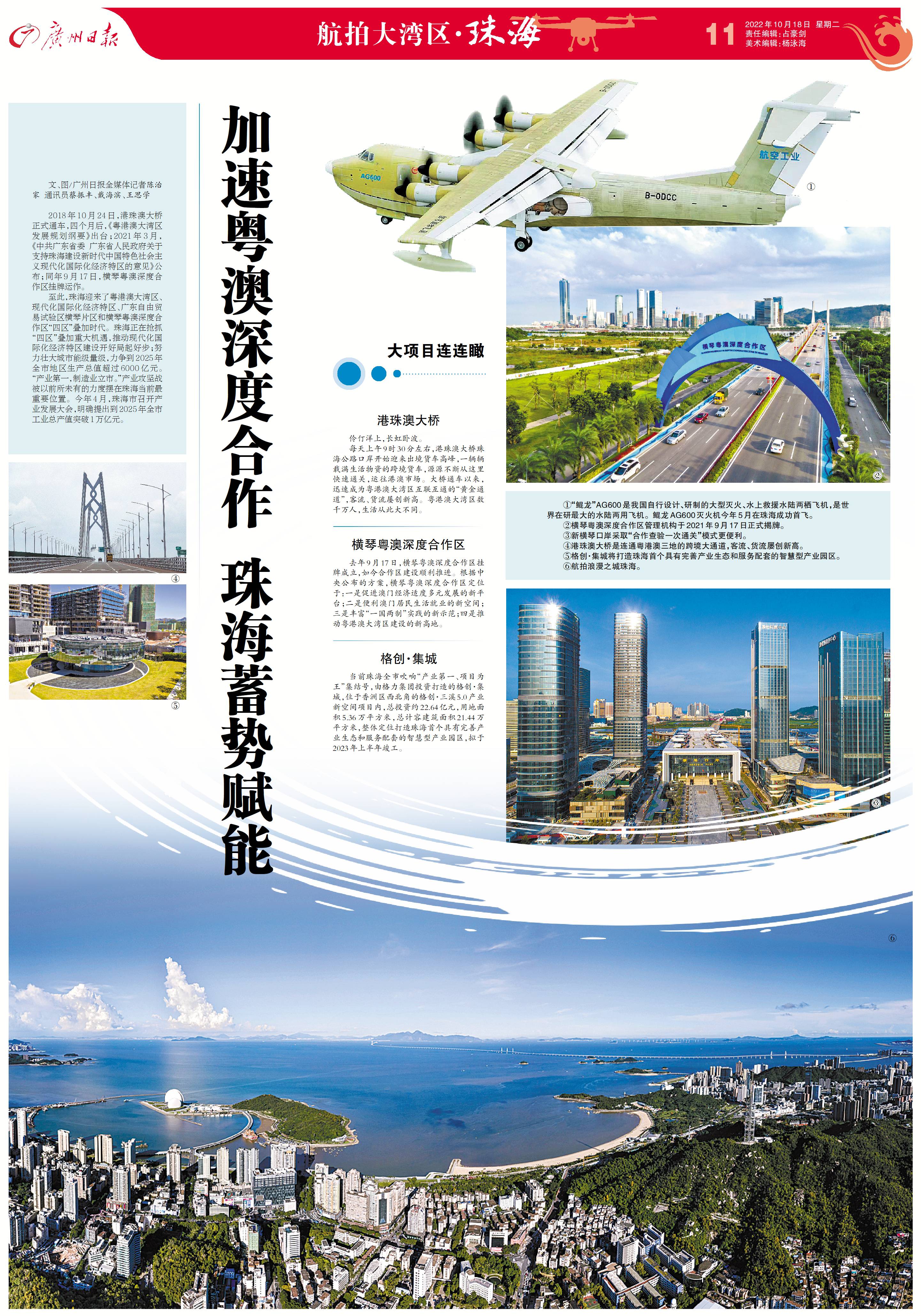 2018年10月24日,港珠澳大桥正式通车,四个月后,《粤港澳大湾区发展规划纲要》出台;2021年3月,《中共广东省委 广东省人民政府关于支持珠海建设新时代中国特色社会主义现代化国际化经济特区的意见》公布;同年9月17日,横琴粤澳深度合作区挂牌运作。至此,珠海迎来了粤港澳大湾区、现代化国际化经济特区、广东自由贸易试验区横琴片区和横琴粤澳深度合作区“四区”叠加时代。