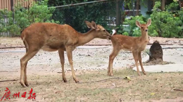 今日,广州日报·新花城记者看到,新生的鹿宝宝欢蹦乱跳,时而和同伴互相追逐,时而往妈妈身上蹭,非常可爱。不过,由于年纪尚小,小家伙们都显得很怕生。