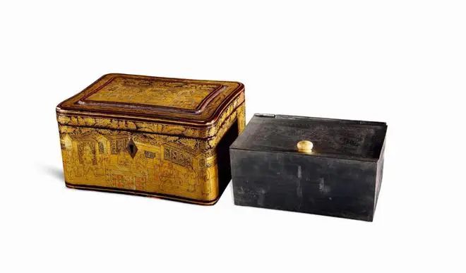 十九世纪黑漆描金售茶图茶叶盒 广东省博物馆藏
