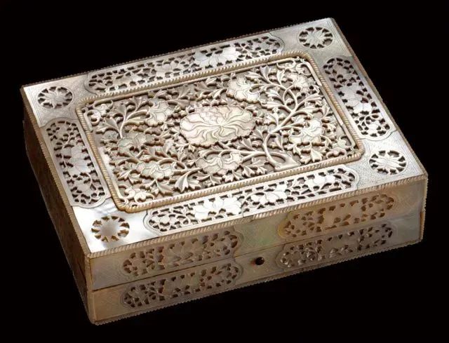 这些广货之所以被西方学者称誉为“中国给西方的礼物”,广州工匠的贡献肉眼可见,虽然他们大多没有留下姓名。据西人记载:“1822年广州十三行一带有五千余家专营外销商品的店铺,约有25万男人、女人和儿童加入外销商品生产制作过程中,广州的艺术家在玳瑁、砗磲、檀香木等雕刻制品,竹木家具、漆器、金银器、织绣、藤制品、铜胎画珐琅器等方面的精湛技艺闻名于世。”如潮绣的抽纱技法、广州银器的花丝工艺、几匣器皿的黑漆描金等,广作在继承发扬传统技艺的基础上,兼容外来文化,无不表现出独特的审美艺术特色。据知,晚清民初蜚声海内外的老字号“宏兴”,便是从广州西关的作坊起家,后迁香港地区发展壮大的外销银器销售商,其制品至今仍不时回流,在各种大型展览会和拍卖市场惊艳亮相。