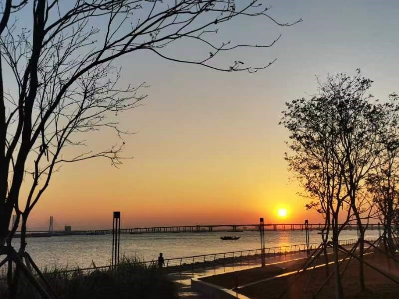 夕阳中远眺凫洲大桥