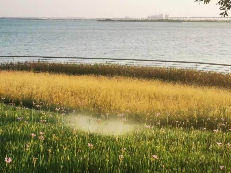 广州市南沙区凫洲水道碧道是基于慧谷生态堤打造的生态碧道,位于虎门水道、凫洲水道、蕉门水道三江六岸交汇处,东起工业区涌,西至大角山滨海公园,全长7.4公里。慧谷生态堤以“防洪优先、自然生态、集约用地”为原则,通过构建多功能生态海堤架构体系,加宽堤岸缓冲距离,有效减少风浪爬高,破解“堤防围城”的景观负面效应,防冲能力显著增强、防洪潮安全系数全方面提升。同时,还可作为台风洪涝灾害天气以外应对突发公共事件时的安全避难场所使用,可容纳约12万人。