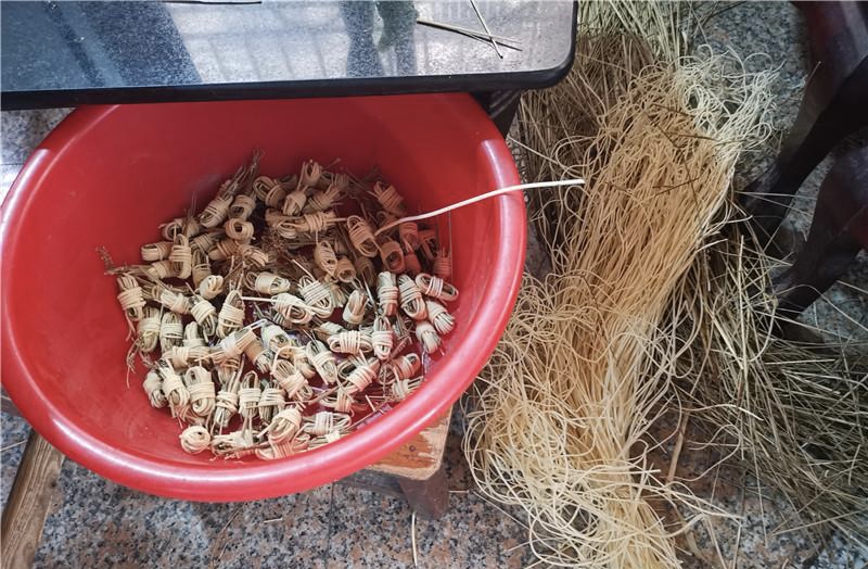梁强告诉记者,现在大部分大石人挑的灯芯草是从湖南运过来的。但在本地人心中,湖南产的灯芯草比本地产的还是要差点,而且一眼就能分辨出来。湖南产的灯芯草,比较粗、硬,要浸久一点才能做,大石产的灯芯草很软熟,浸一下水,就像面一样软了,而且大石产的灯芯草是有花的,做出来的每一个灯芯扣都有花,但湖南的灯芯草不仅没有花,而且点油灯容易熄灭,大石产的灯芯结构柔软、吸油力强、点灯更持久。