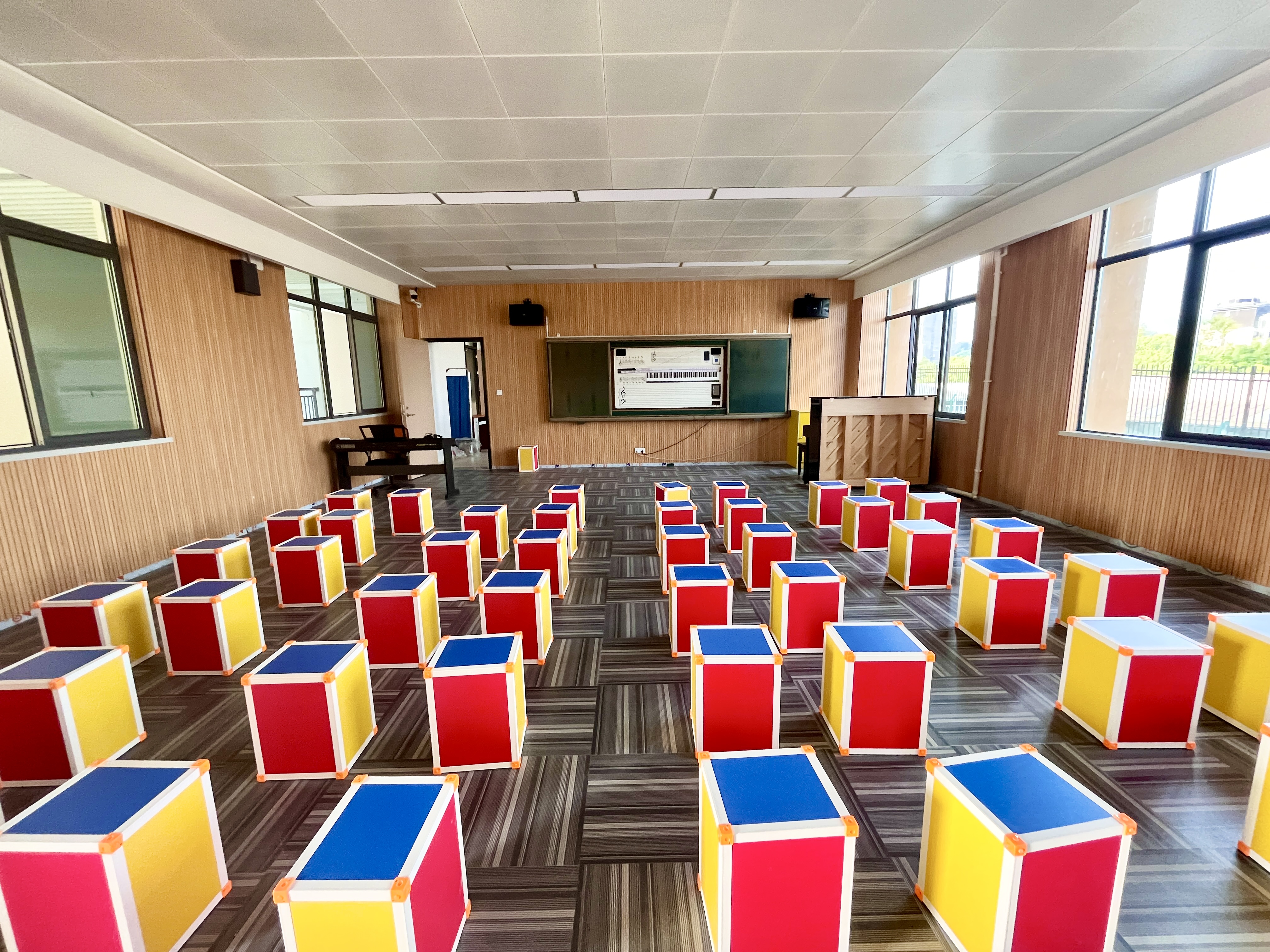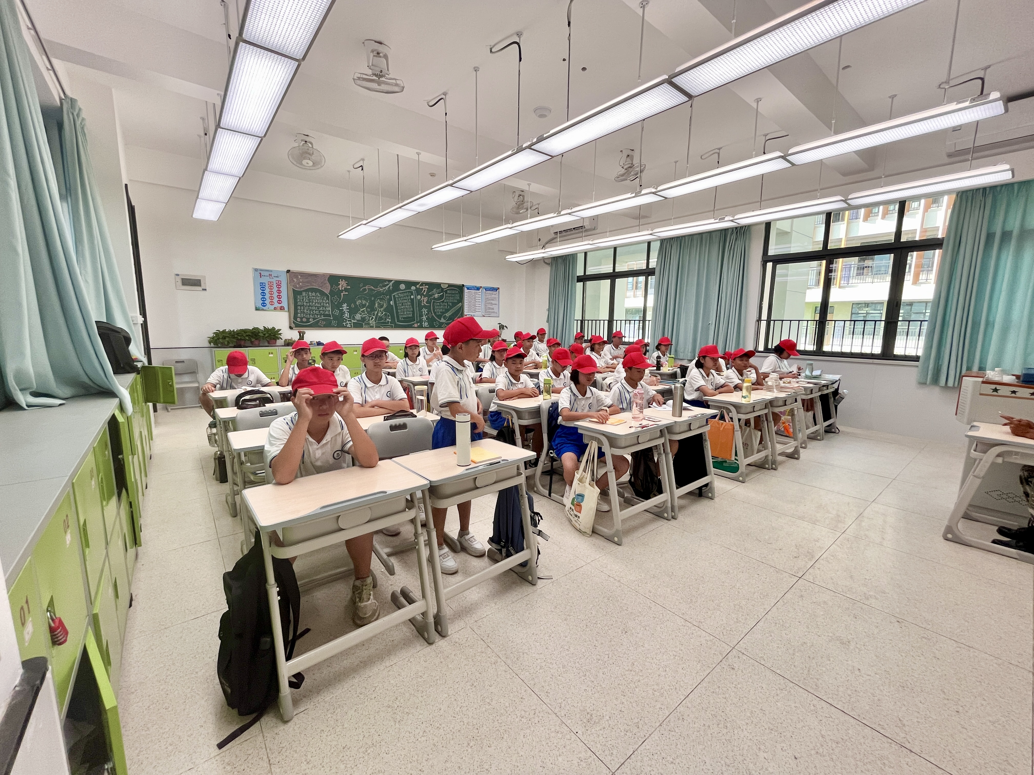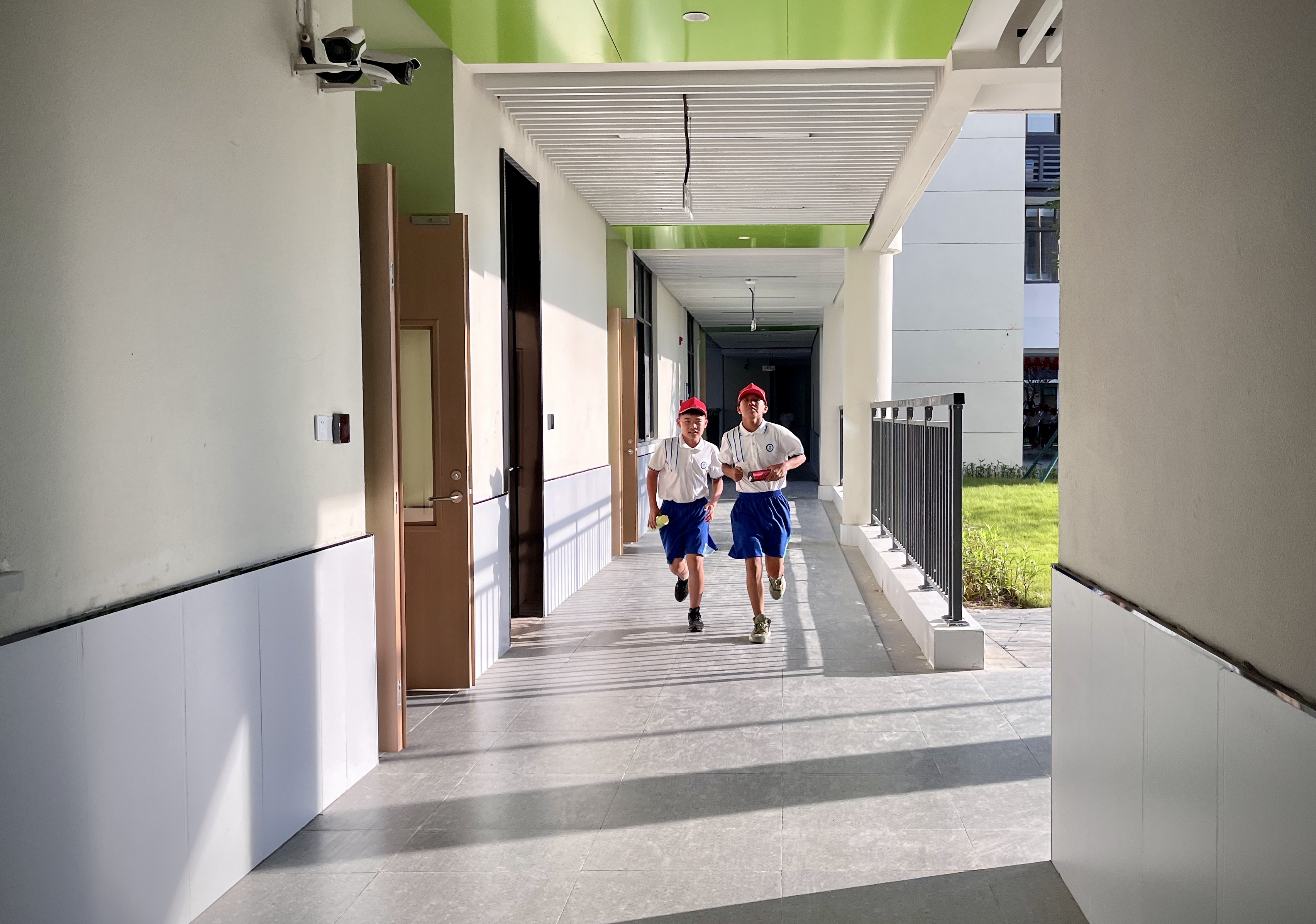 作为新学校,增江华附的场室充足,蓝白色的建筑风格与学校“以和育人,以美化人”的办学理念相得益彰,教学楼前的广场就称“和美广场”,尽显温润和美气质。楼道间还挂着同学们在中秋活动亲手制作的灯笼。午间,一年级学生自带床垫、枕头与被子,在配备了空调、窗帘的场室午休,舒服“平躺睡”。此外,学校有一栋崭新的宿舍楼,初中学生可在校住宿。