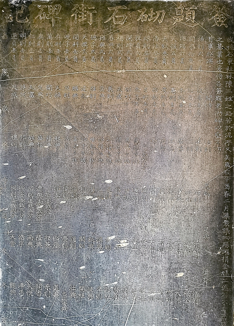 走进长林厚道村门,有一块石碑,上面刻有当时乡民集资修建长林厚道的碑记:“穗石东社林陈二姓之路苦于泥泞久矣,岁在辛酉春二月集众议……”。
