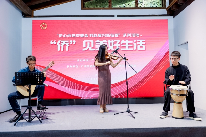 活动在一首舒缓悠扬的《敕勒歌》中拉开序幕,中国青年小提琴演奏家,中山大学艺术学院管弦教研室主任、副教授,广州新侨联谊会副会长原嫄及团队的表演赢得阵阵掌声。原嫄将乐器演奏融入分享课堂之中,让音乐绽放无限魅力。