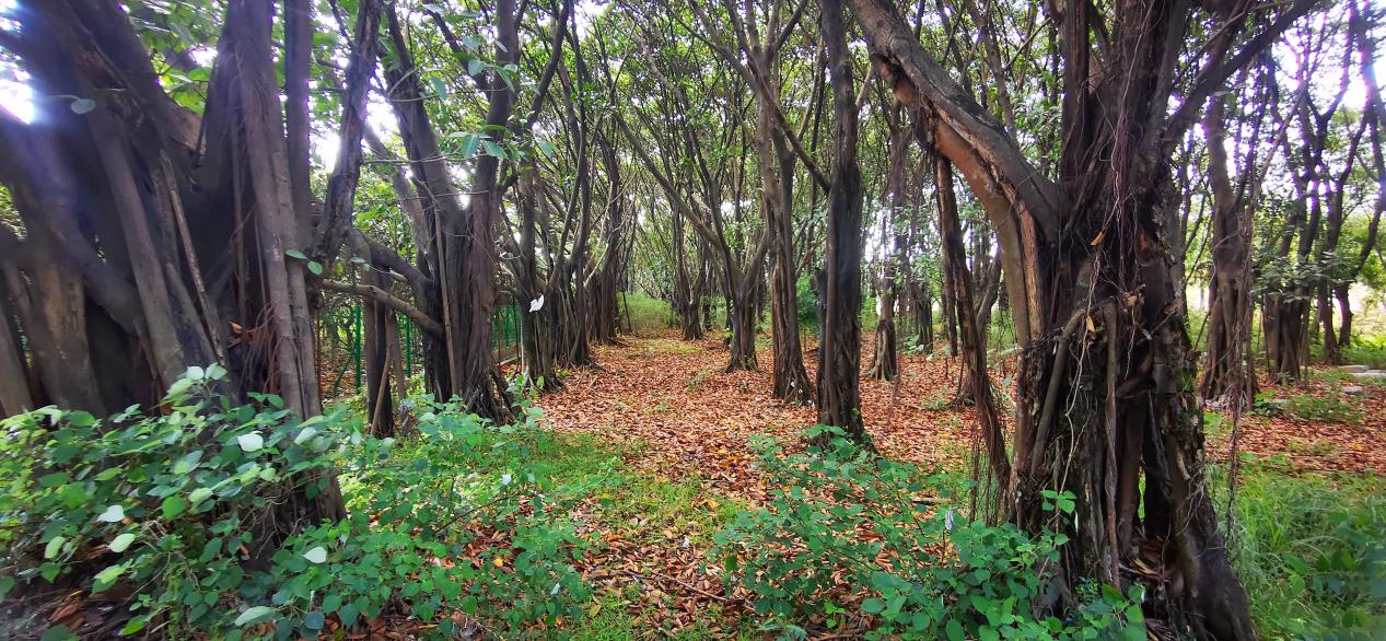 榕溪谷前身为大沙防护林带,原址有众多高山榕生长,林下空间开阔,景观视线良好。现有景观区域未设计观赏园路及休闲配套设施,生态价值、景观价值、休闲价值发挥不足,利用率和影响率较低。