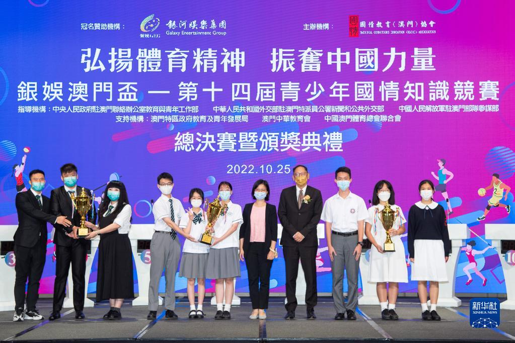新華社澳門10月25日電(記者李寒芳 劉剛)由國情教育(澳門)協會主辦的“第十四屆青少年國情知識競賽”總決賽暨頒獎典禮25日在澳門舉行,教業中學、培正中學和澳門理工大學分別奪得了兩個中學組和一個大學組的冠軍。