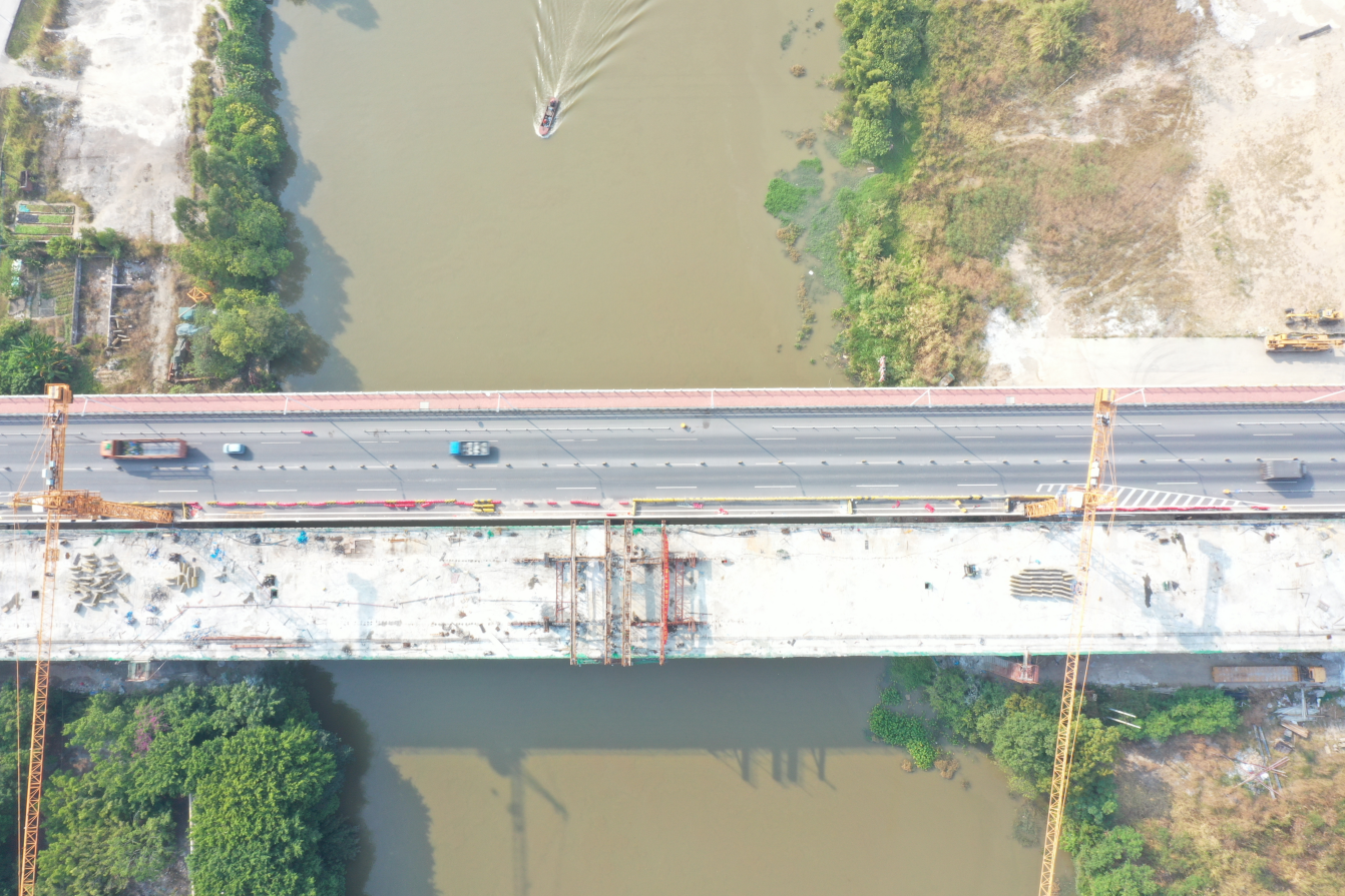 连接炭步镇和花都城区的炭步大桥旧桥是重要交通通道。“旧炭步桥建于1993年,由于受超载超重车影响,桥梁结构破坏较大,无法满足日益增长的交通需求,该桥分别于1999年及2007年进行过两次维修加固,2015年检测结果评定为三类桥,2016年检测结果评定为四类桥。为此,广州市道路养护中心与花都区政府合作共建项目炭步大桥重建工程。”炭步大桥重建工程项目相关负责人告诉记者。同时,炭步大桥重建工程被列为花都区的十大民生工程,该工程正式完成后将大大缓解当地交通压力,解决这一花都西部重要通道的安全畅通问题,市民的出行体验及行车安全性也将得到进一步提升。