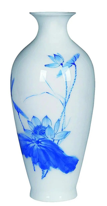 王步青花“小荷才露”图薄胎瓷瓶。(景德镇市陶瓷馆藏)