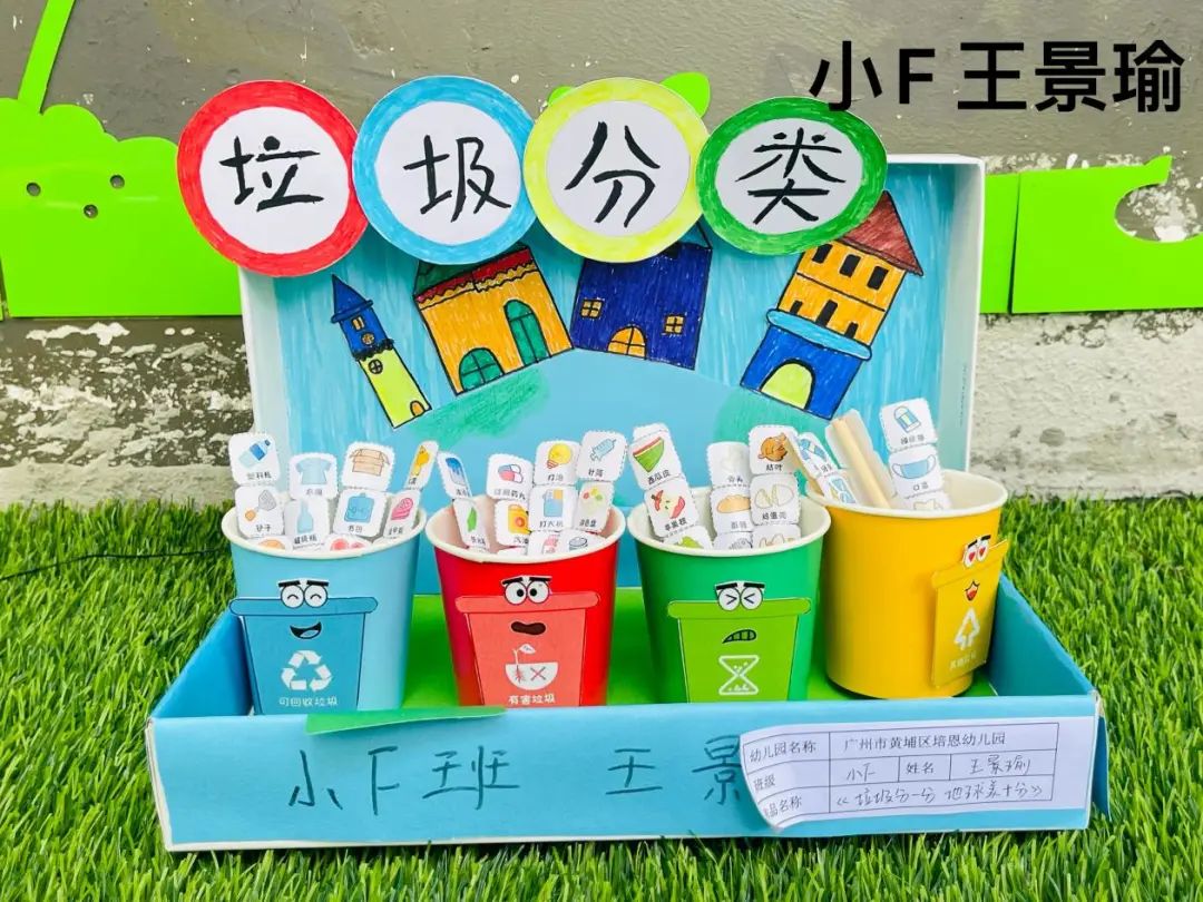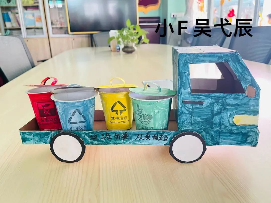 以垃圾分类为主题的亲子手工,让家长和孩子们在活动中感受亲子共同创作的乐趣。孩子们化身小小“设计师”,搜集各种废旧材料,制作出一件件精美的作品。