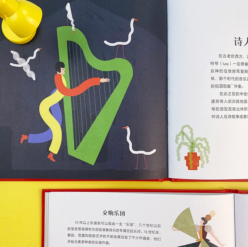 用简约、时尚、独特的插图,展现乐器的前世今生。