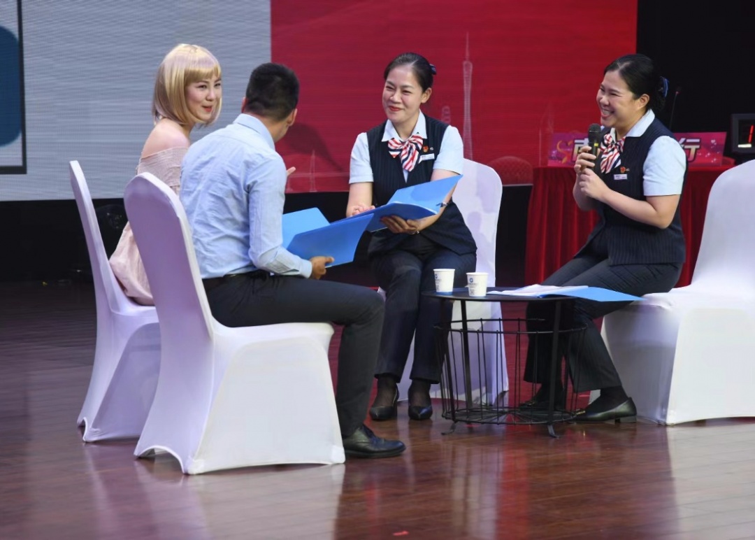 番禺建行党委高度重视客户服务和客户体验提升工作,出台《喜迎二十大 提升服务效率和客户体验专项行动方案》并于今年6月启动“从心出发,温暖万家”——“番”式网点服务技能大赛活动,着力打造优质服务品牌。经过活力晨会比拼、柜面工匠竞赛、演讲比赛、厅堂服务竞赛等子项目的激烈角逐,番禺建行辖内26家网点、数十名员工脱颖而出,齐聚番禺区融媒体中心演播大厅,参加服务演讲、大财富管理、服务纠偏和服务投诉案例剖析四个项目的总决赛,接受评委和观众的评审。