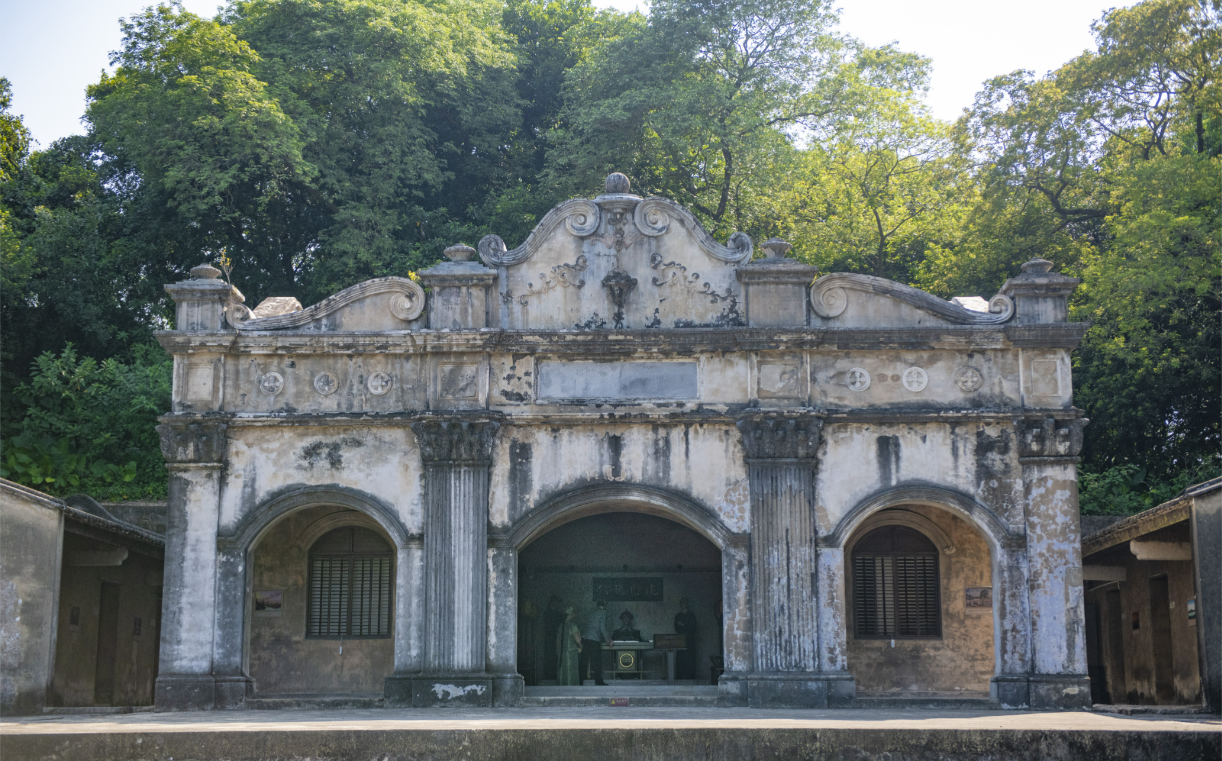 见证辉煌的上横档岛,也曾见证壮烈牺牲。具有巴洛克风格建筑的官厅,前身就是“虎门税馆”旧址,后期税馆功能丧失后,成为上横档炮台的军事指挥中心。在1841年2月26日的第一次鸦片战争虎门海战中,上横档岛被攻陷,200多名守岛官兵战死,部分负伤官兵不愿投降,投入官厅门前练兵场的井中,以身殉国。