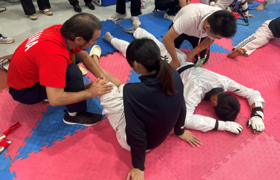 学院医务所医务人员前往赛区全程跟进,及时为参赛队员进行康复按摩,掌握重点运动员的损伤问题,为其提供针对性运动康复方案及治疗计划,缓解运动伤害;邀请广州市体育科学研究所专家对队员进行心理辅导,与队员们进行心理交流,了解其现实心理状况和心理需求,有效提高运动员的赛场心理调控能力。