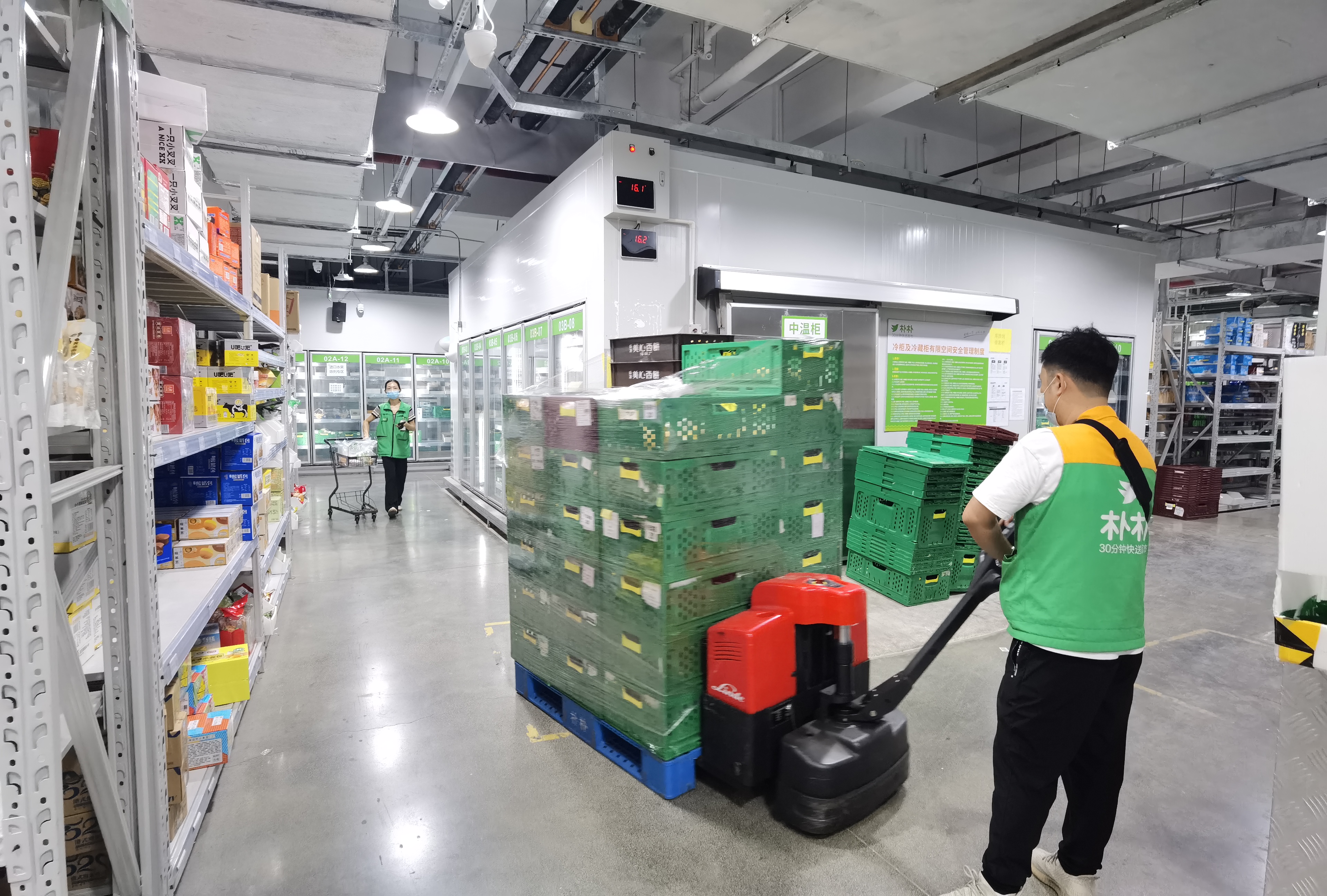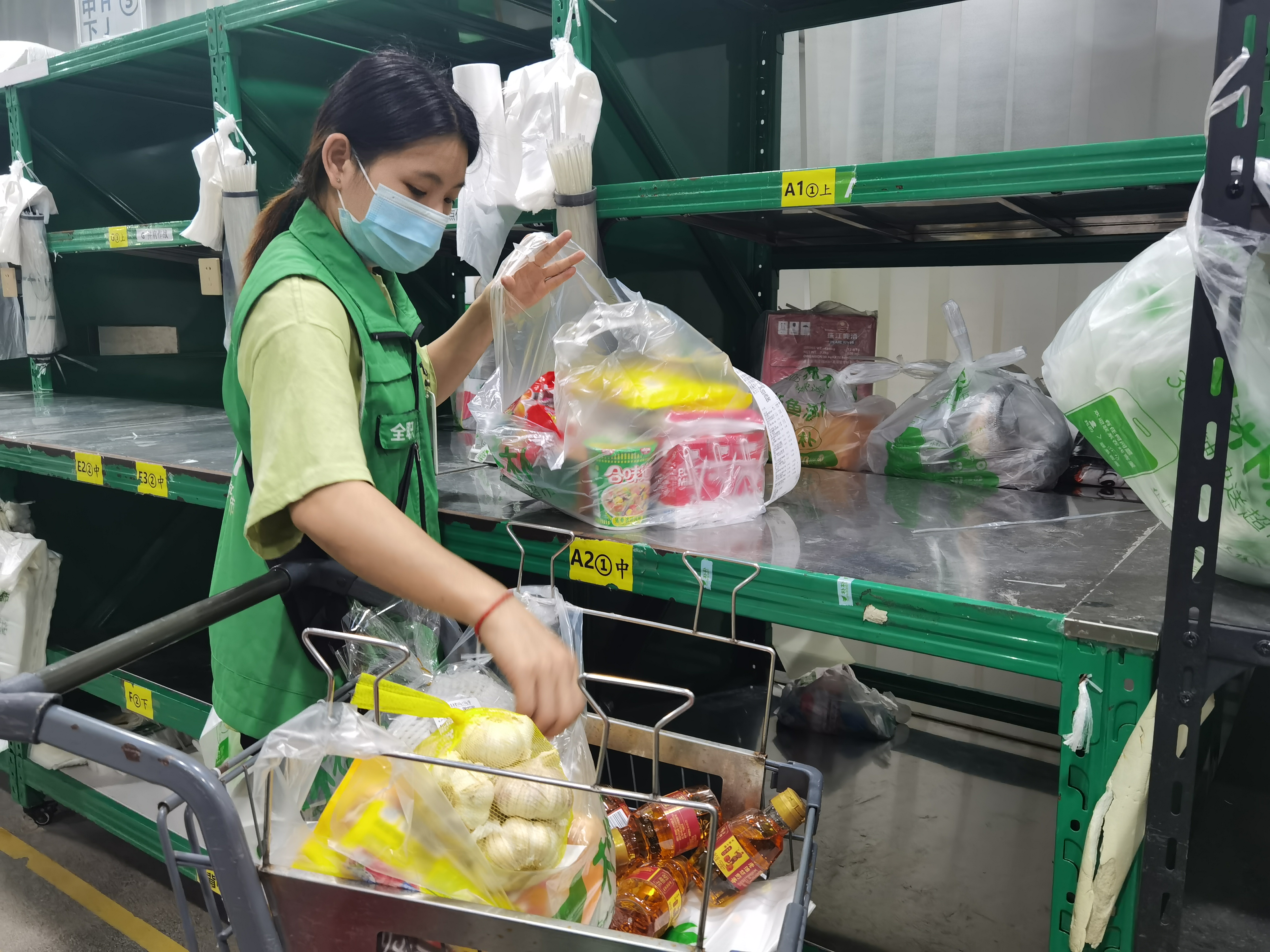 “这两天,新市这个仓每天的订单量超5000单,比平时增加30%,我们所有员工都取消休假,全力奋战在保供的第一线。”朴朴超市广州公共事务总监罗文介绍,根据实时数据显示及分析,补货、拣货、送货都各司其职,确保货物充足、满足需求。据了解,朴朴超市是一家30分钟即时配送的移动互联网购物平台,全部商品均由冷链配送和保存,物资储备量都是日常的2倍-3倍。“我们通过加大商品的储备量和投放量,让货品充足、顾客满足。”罗文说。