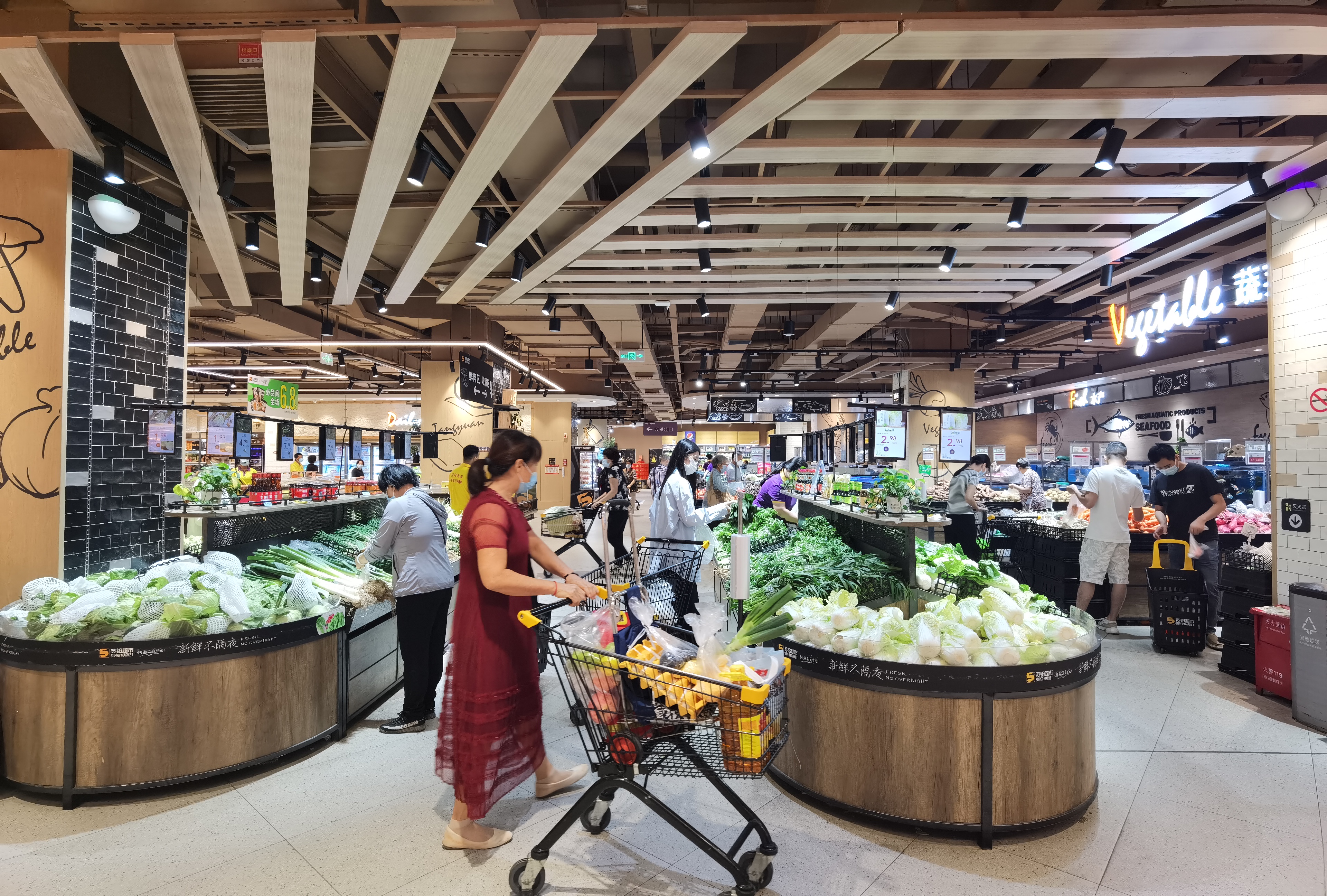 “请扫码,出示24小时核酸阴性证明。”10月30日,记者在位于黄石街白云汇广场的苏铂超市看到,保安在超市门口引导进场顾客扫码测温、戴好口罩。在超市内,消费者根据需求选购蔬菜、水果、肉类、粮油等商品,买菜的市民络绎不绝,但货源仍然充足,各菜档的货品未见“清空”。