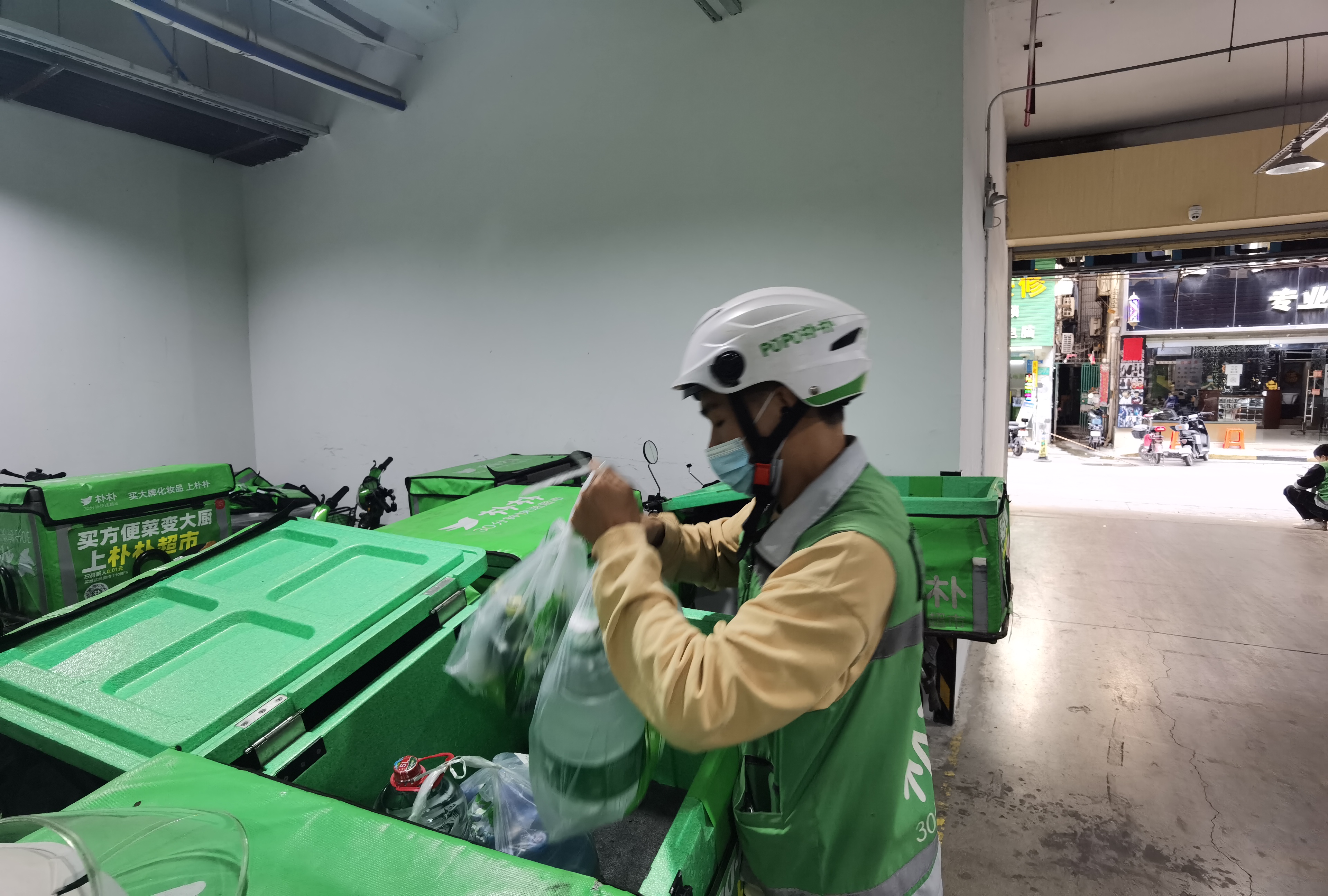而在位于新市街新市新街的朴朴超市前置仓内,五六名拣货工作人员马不停蹄,拿着订单迅速扫码并分拣,平均下来一个订单备货仅需3分钟。记者在仓库内的显示屏看到,每个订单平均配送时间为30分钟,每个工作人员和骑手配合默契,都能保证订单在第一时间备货、配送。