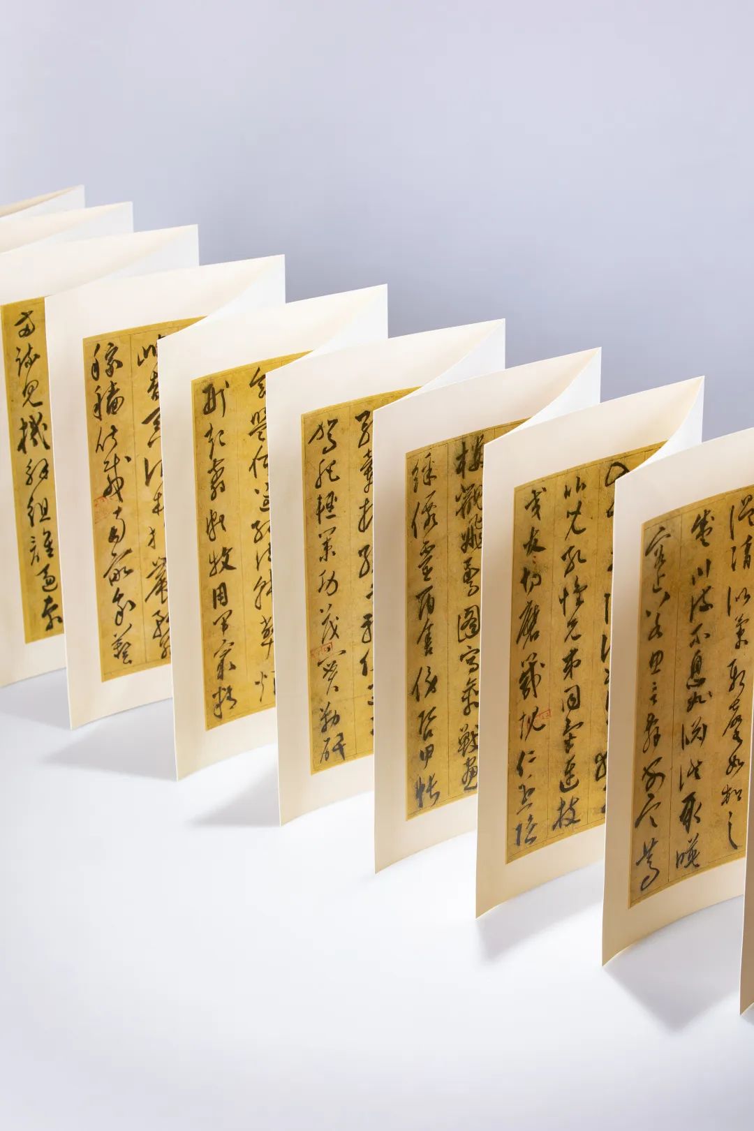 书册采用经折装装帧,能够完全摊平呈现墨迹,为观赏和临摹的不二选择。该书搭配苏州大学艺术学院蔡春旭编写的导读册共同发行,导读册中介绍了陈淳的家世与交游情况,对其《草书千字文》从笔法、印章、用纸等多方面进行赏析,为观者提供一个解读陈淳的窗口。