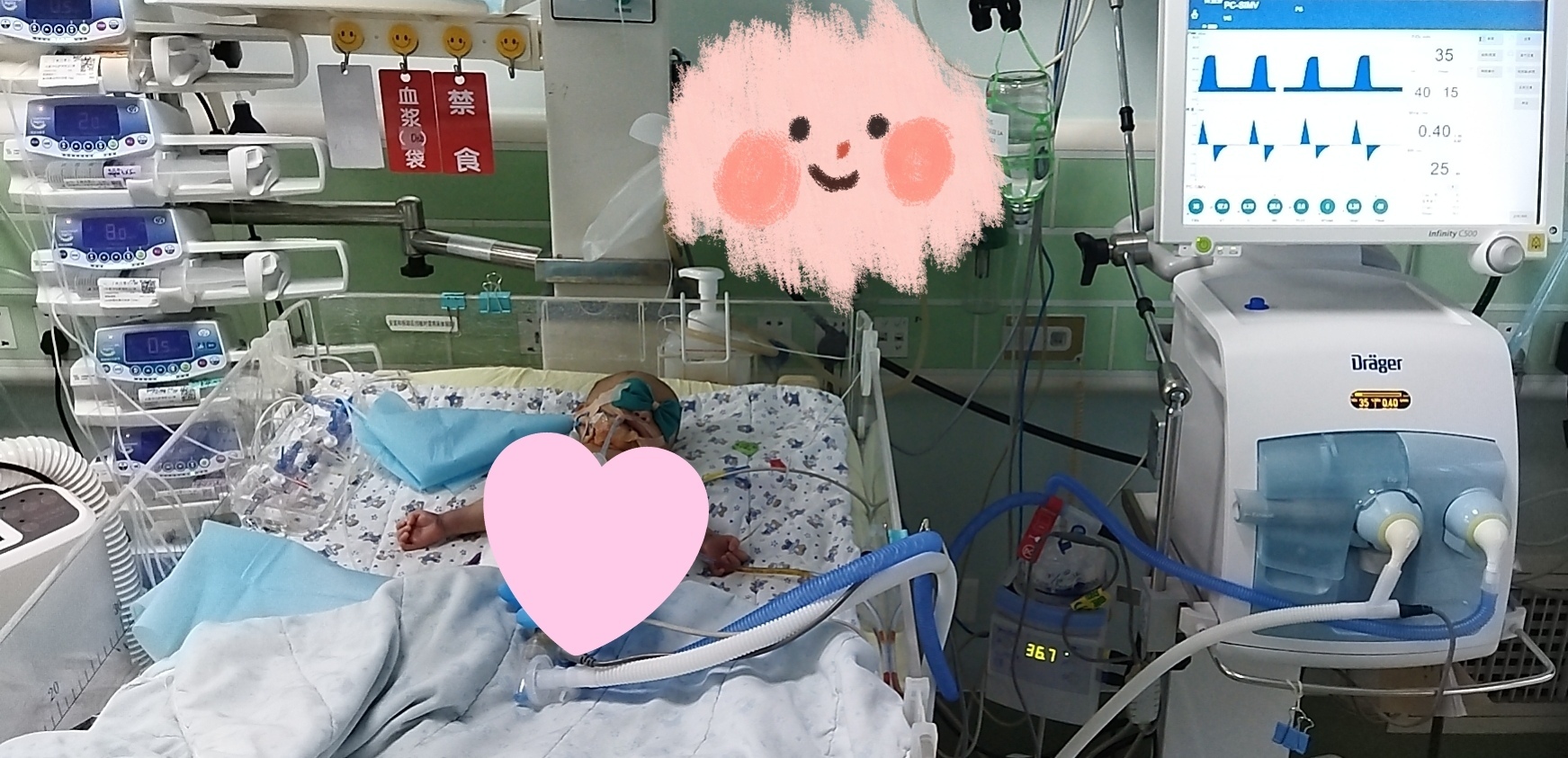 小小出生后发现,情况比预想中的更糟糕。小小体重低、瘦弱无力,出现了咳嗽、呼吸困难、面部紫绀,全身花斑纹等症状,出生就需要依靠呼吸机辅助呼吸,病情一步步加重,命悬一线。