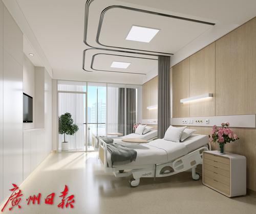 广州医科大学附属肿瘤医院(南沙院区)建成病房的效果图。