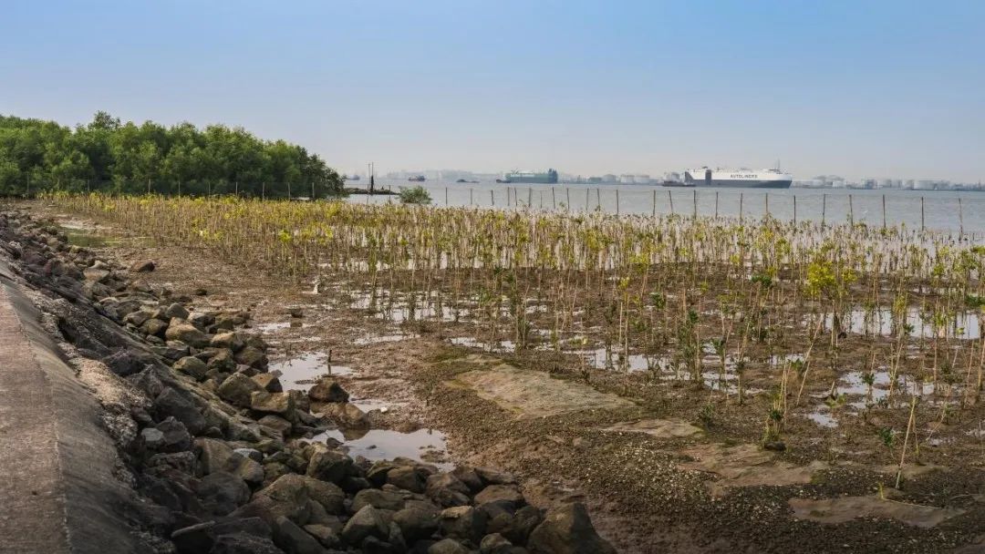 红树林具有抵御风暴潮、保护堤岸、维护生物多样性、净化海水、调节气候、科学研究等重要作用,同时还具有固碳、储碳的重要生态功能。该项目修复种植红树林主要为海桑、老鼠簕、卤蕨、秋茄树和桐花树品种,其中种植数量最多的为秋茄树;其次分别为桐花树、老鼠簕、海桑;而种植的卤蕨较少,主要分布在红树林修复种植区域近岸位置。根据2022年4月至8月红树林生长监测统计,目前该种植区域红树林成活率约为91.6%,该区域红树林平均株高增长约8.9厘米。
