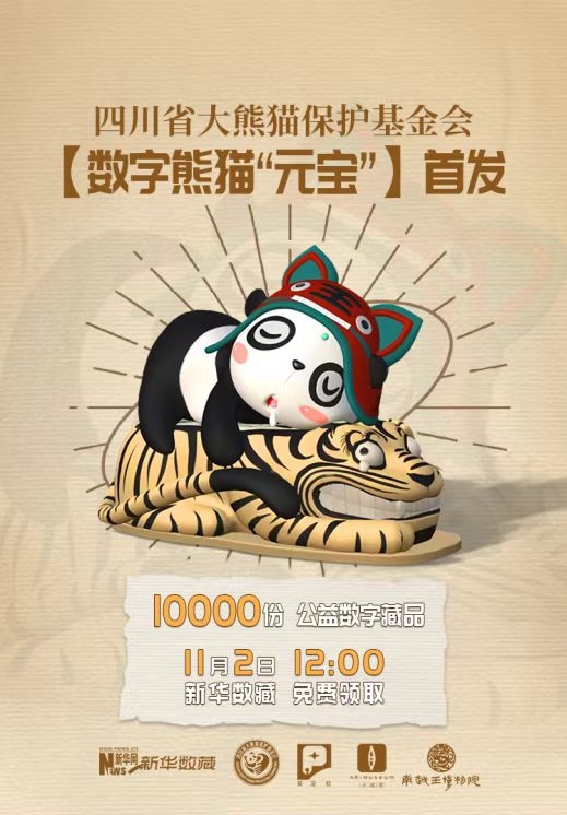 11月2日,四川省大熊猫保护基金会携手南越王博物院在新华数藏平台首发以数字熊猫“元宝”为主题的公益数字藏品。