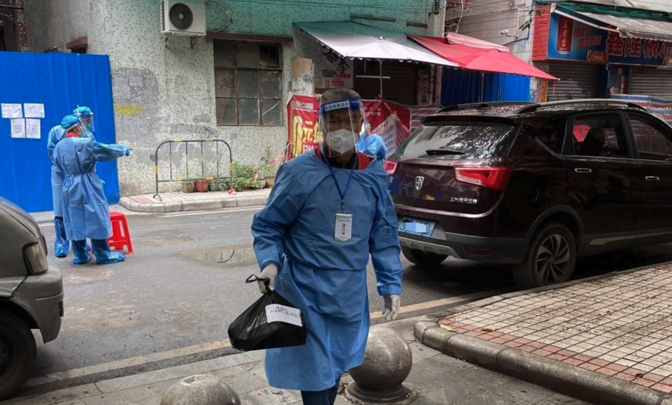 同是中风险区范围的萧岗北004网格内,党员楼栋长颜成湖也奔走在运送物资的路上,“送到巷口,我们走多几步,也就让住户少出来几步,尽量避免外出逗留。”