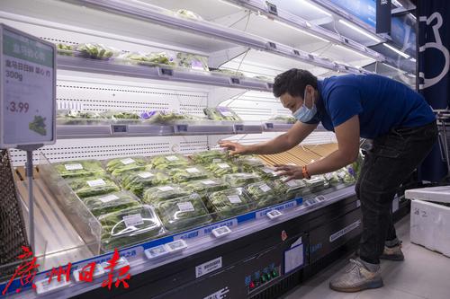 记者看到这次补的以市民需求量较大的蔬菜,例如油麦菜、生菜、菠菜苗等,还有奇异果等多款水果。店内员工告诉记者,该时段是今天第三轮补货,之后还会继续补,市民可放心选购。