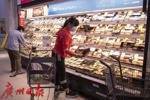 5日中午,海珠区江南大道中一家新鲜超市货源充足。