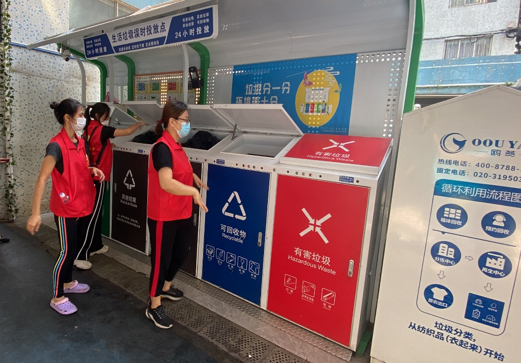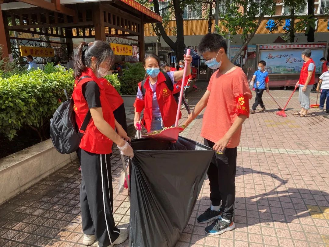 志愿者们沿着小区的小路拾捡垃圾和清洗路面,清理楼道周边的积存垃圾。大家把道路打扫得干干净净,并把清理出来的垃圾分类投放到指定存放点。