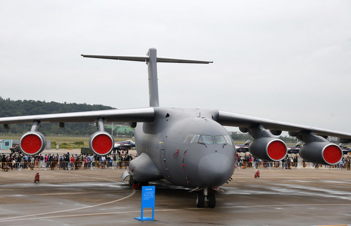 ↑11月8日,运-20在航展静态展示区展示。 新华社记者 卢汉欣 摄