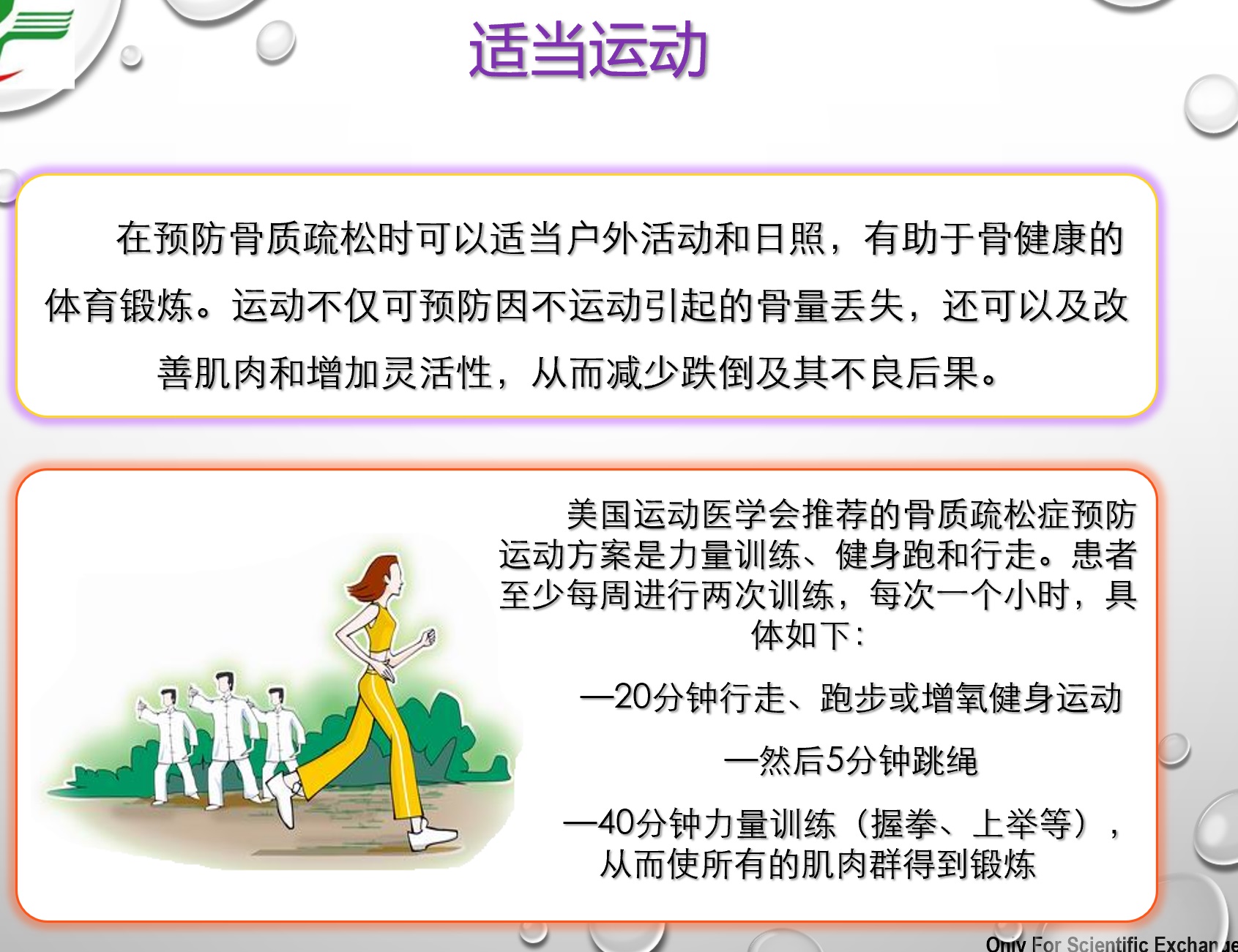 “总结来说,完整的运动方式应该包括有氧运动、阻抗运动、平衡训练和柔韧性训练这四个方面。例如太极拳、静力靠墙蹲、坐位抬腿、举矿泉水瓶、拉弹力带等,另外可适当配合补充优质蛋白。如果老年患者不小心摔倒了,局部疼痛、不能活动,或者活动的时候疼痛加重,建议不要自行行走,要及时打120到医院就诊。”