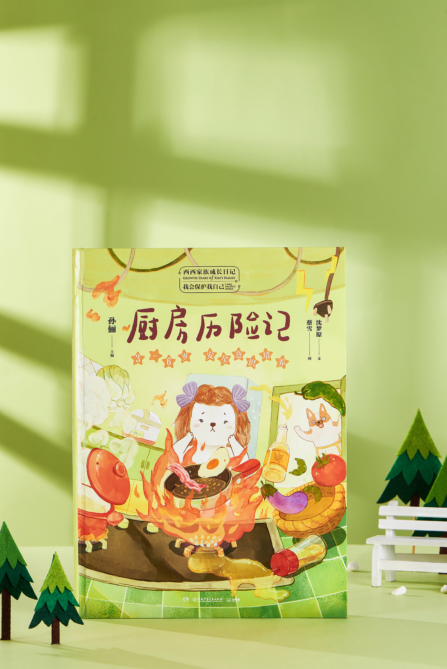 在《厨房历险记》里,孩子们也可以从五妹绵绵西私闯厨房差点引发火灾的故事里,发现厨房中隐藏的危险,懂得不能在没有家长陪同下任意开火、把厨具当玩具的道理;