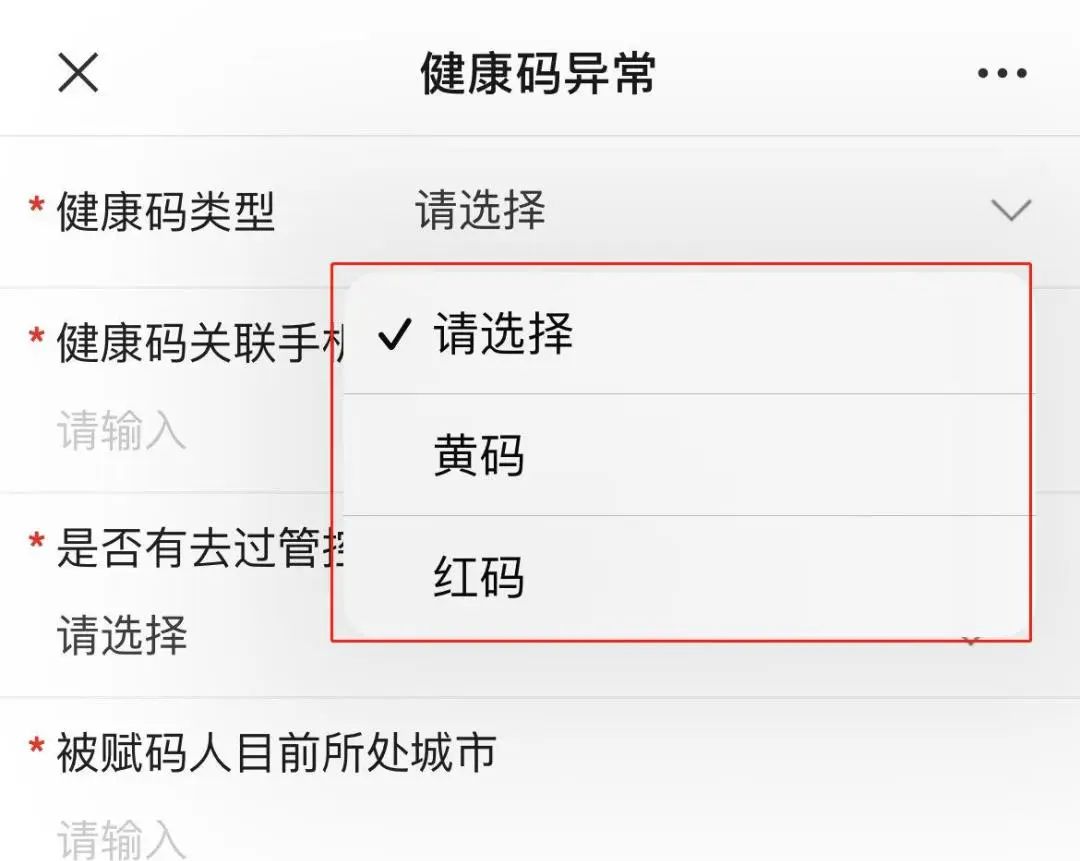 第一步:根据个人情况,选择“黄码”或“红码”。
