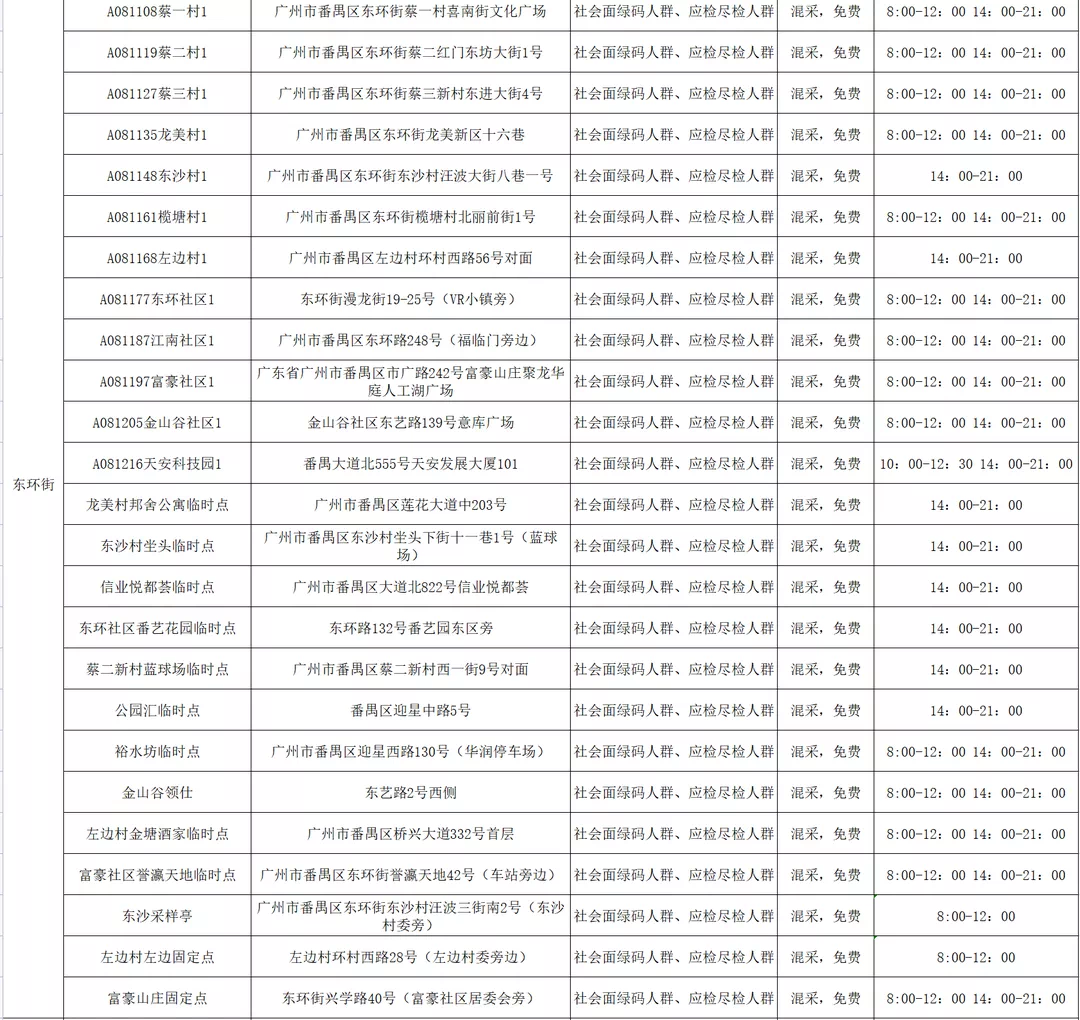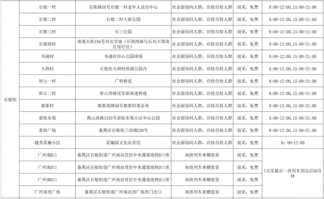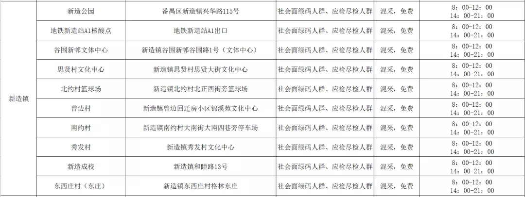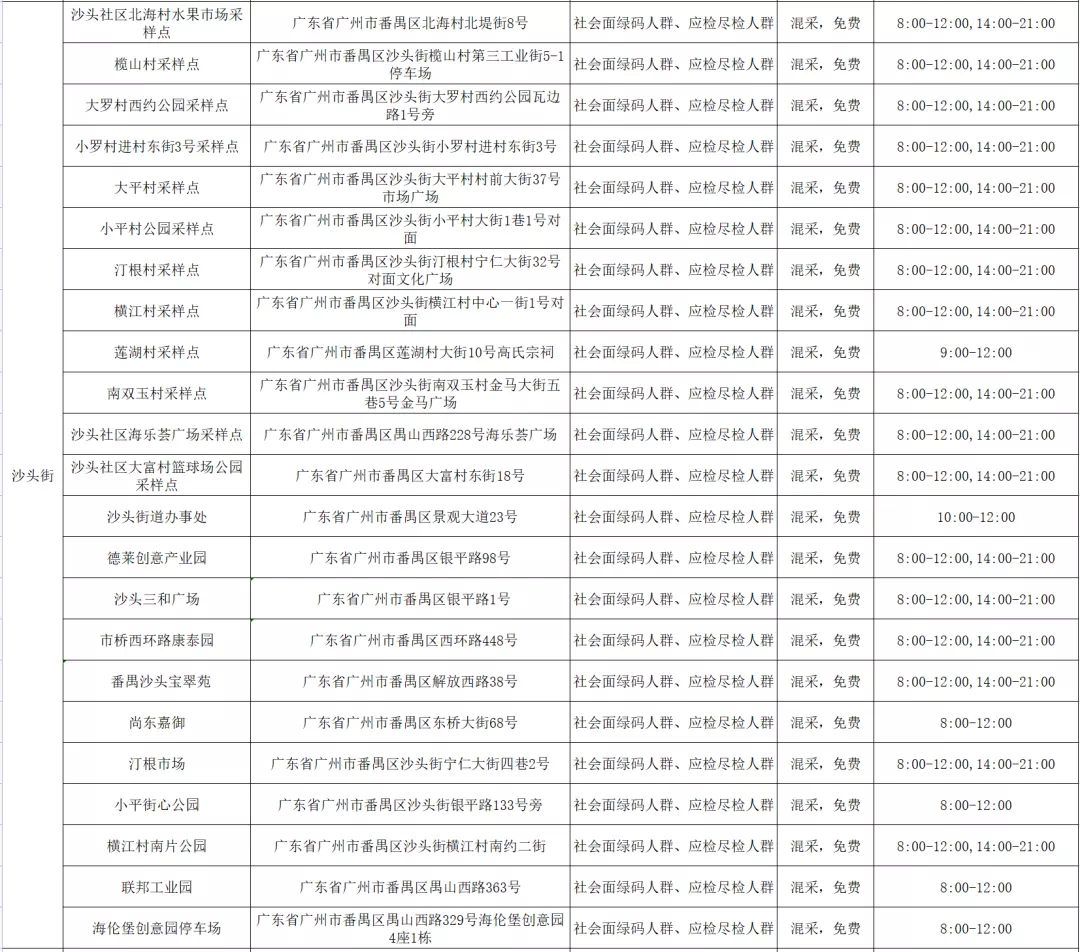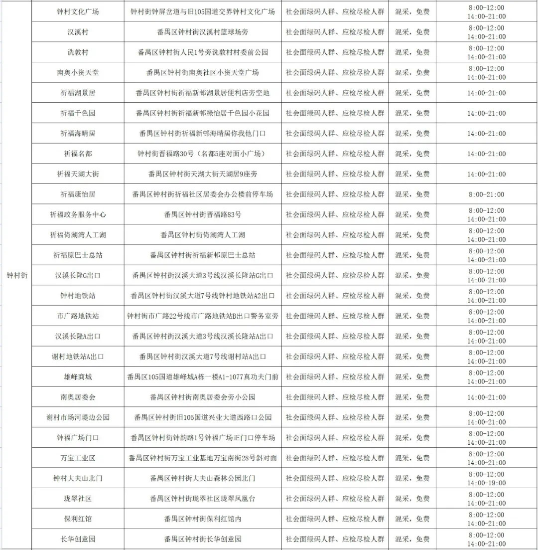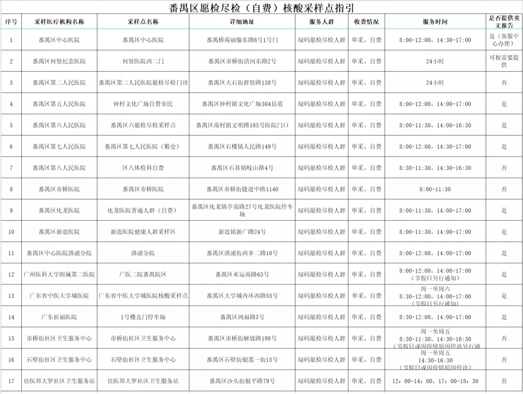 番禺区11月11日愿检尽检(自费)核酸采样点指引